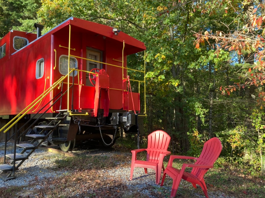 Come spend some time in a real, completely refurbished railroad caboose (with all the modern amenities) just off the Blue Ridge Parkway at Orchard Gap, approximate mile 193.5. Probably the most unique lodging along the Blue Ridge Parkway. We now have disc golf baskets and discs as well as cornhole sets. Pet owners please read the pet policy under additional rules. We DO NOT have any cleaning fees, never have. The service fees are not ours.