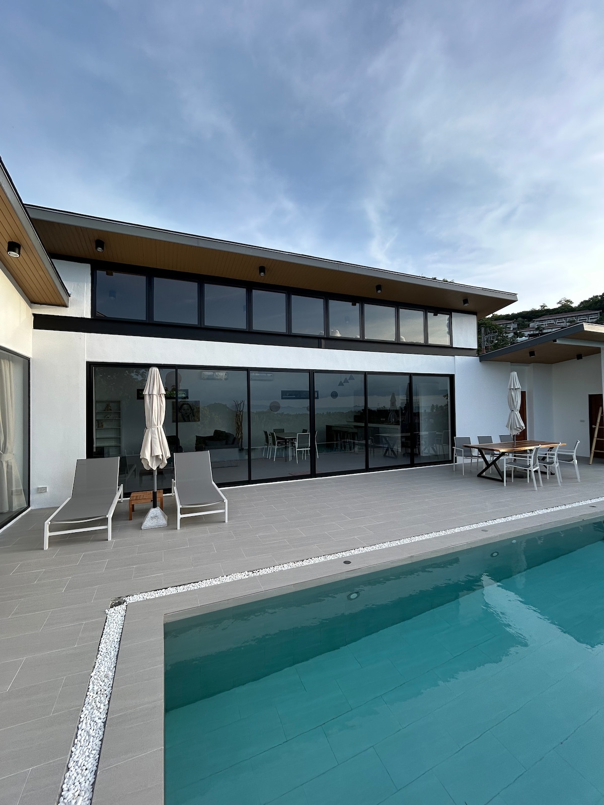 Vítejte ve „Vile Momo Koh Samui“, klidné vile s výhledem na moře na ostrově Samui. Vila se nachází pouhých 18 minut od letiště. Zde můžete strávit relaxační dovolenou obklopeni neuvěřitelným tropickým prostředím. Moderní design vily zajišťuje nádherný výhled. Zaplavte si v nekonečném bazénu, odpočiňte si v venkovním salonku, relaxujte na pohovce nebo se každý den probouzejte s nerušeným výhledem na moře z kterékoli z našich 3 ložnic. Voda a elektřelektřina (až 90 kW denně) jsou zahrnuty v ceně.