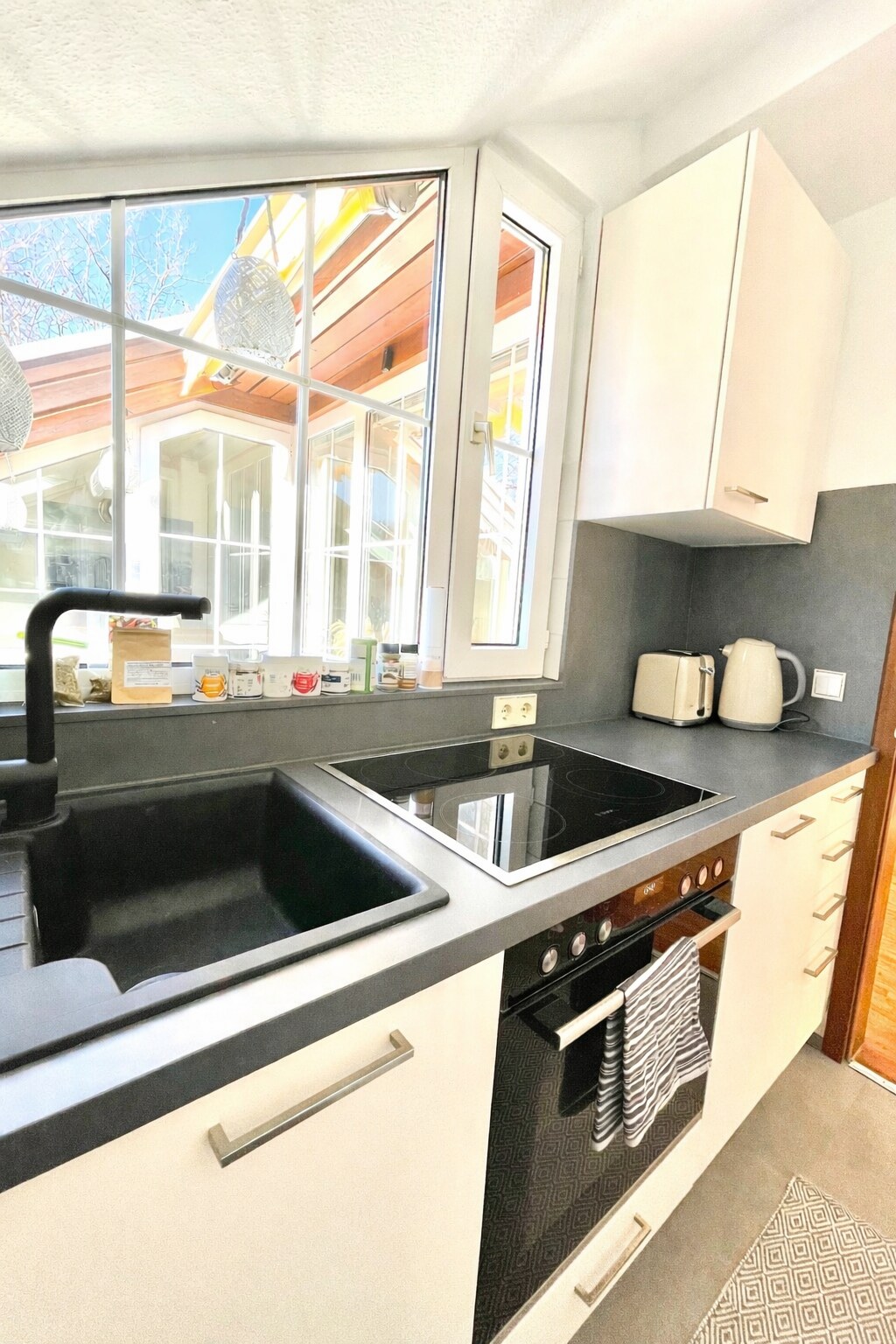 Láskyplně zrekonstruovaný starý byt. Střešní okna vpustí dovnitř hodně světla a výzdoba je jasná a barevná. Můžete dobře pracovat za stolem. Můžeš relaxovat v útulném křesle. Komoda má úložný prostor pro tvé věci. Na požádání na tebe čeká dětská postel (cestovní postýlka Hauck dlouhá 120 cm). Kuchyně je prostorná a plně vybavená. Byt má ze dvou stran šikmé stěny. Díky tomu je útulný, ale možná příliš nízký pro velmi vysoké hosty.