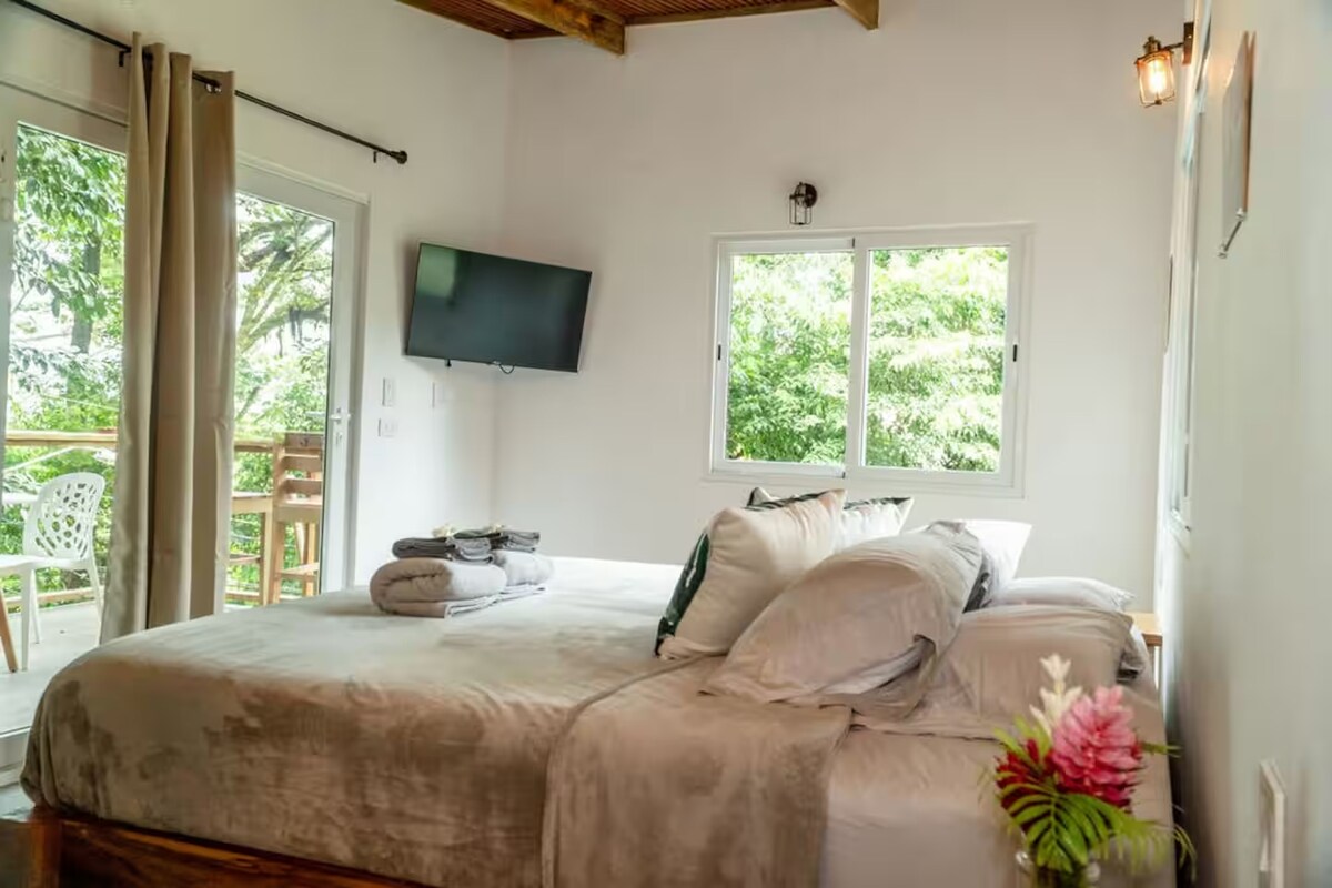 Escape to a tropical treehouse in Big Creek, Isla Colón, Bocas del Toro. Wake up to the sounds of toucans and monkeys, just minutes from Bluff Beach and surf spots. This bright, air-conditioned treehouse offers a partial ocean view, full kitchen, modern bath, and a terrace surrounded by lush nature—perfect for morning coffee or sunset cocktails. Ideal for couples and surf lovers seeking a peaceful Caribbean getaway close to town.