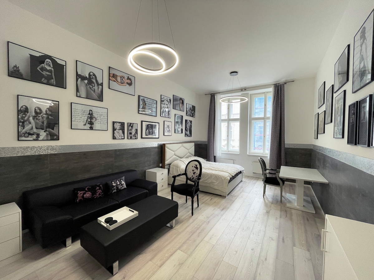 Nezůstávejte jen v Praze, žijte v Praze!😉 Zažijte městský život v srdci centra, ale v klidné ulici. Váš domov je přímo v centru dění. Všechny hlavní atrakce, restaurace, kino, posilovna, wellness, nákupy přímo před domem: ➤ 5 minut: Václavské náměstí, náměstí Republiky ➤ 1 min: MHD ➤ 3 minuty: hlavní nákupní ulice Na Příkopě ➤ 10 minut: Hlavní nádraží, Staroměstské náměstí (Astronomické hodiny), nákupce Palladium, noční život ulice Dlouhá, Národní muzeum, luxusní nákupy.