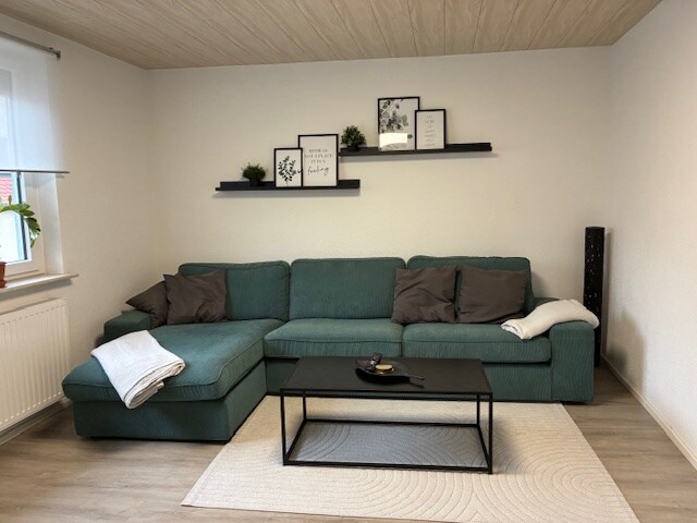 Die neu sanierte, 94 qm große City-Wohnung, mit großer Wohnküche, Spülmaschine und Tageslichtbad, befindet sich im Hochparterre unseres schönen 2-Familienhauses, das in einer ruhigen Nebenstraße mit eigenen Stellplätzen mitten in Heubach liegt. Auf dem möblierten Balkon kann man den Tag mit einem Frühstück starten oder gemütlich ausklingen lassen. Bushaltestelle, Apotheke, Eisdiele, Metzgerei und 2 Bäckereien mit Frühstücksangebot sind in nur 1-2 min zu erreichen. Auch Monteure sind willkommen.
