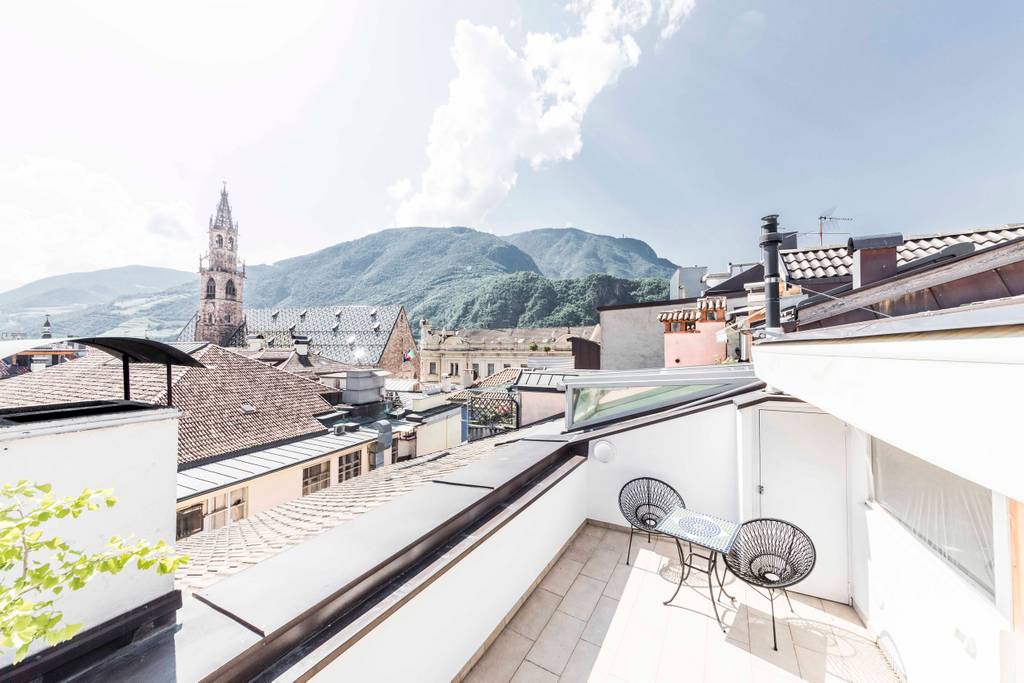 Útulný apartmán (59,00 m2) nad střechami starého města Bolzano (pěší zóna); 100 m od historickým arkádám, 15 m ke známému ovocnému trhu, 290 m k muzeu Ötzi, 250 m k náměstí Waltherplatz (katedrála / vánoční trh) a 13 min. k vlakovému nádraží / 15 min. k autobusovému nádraží.