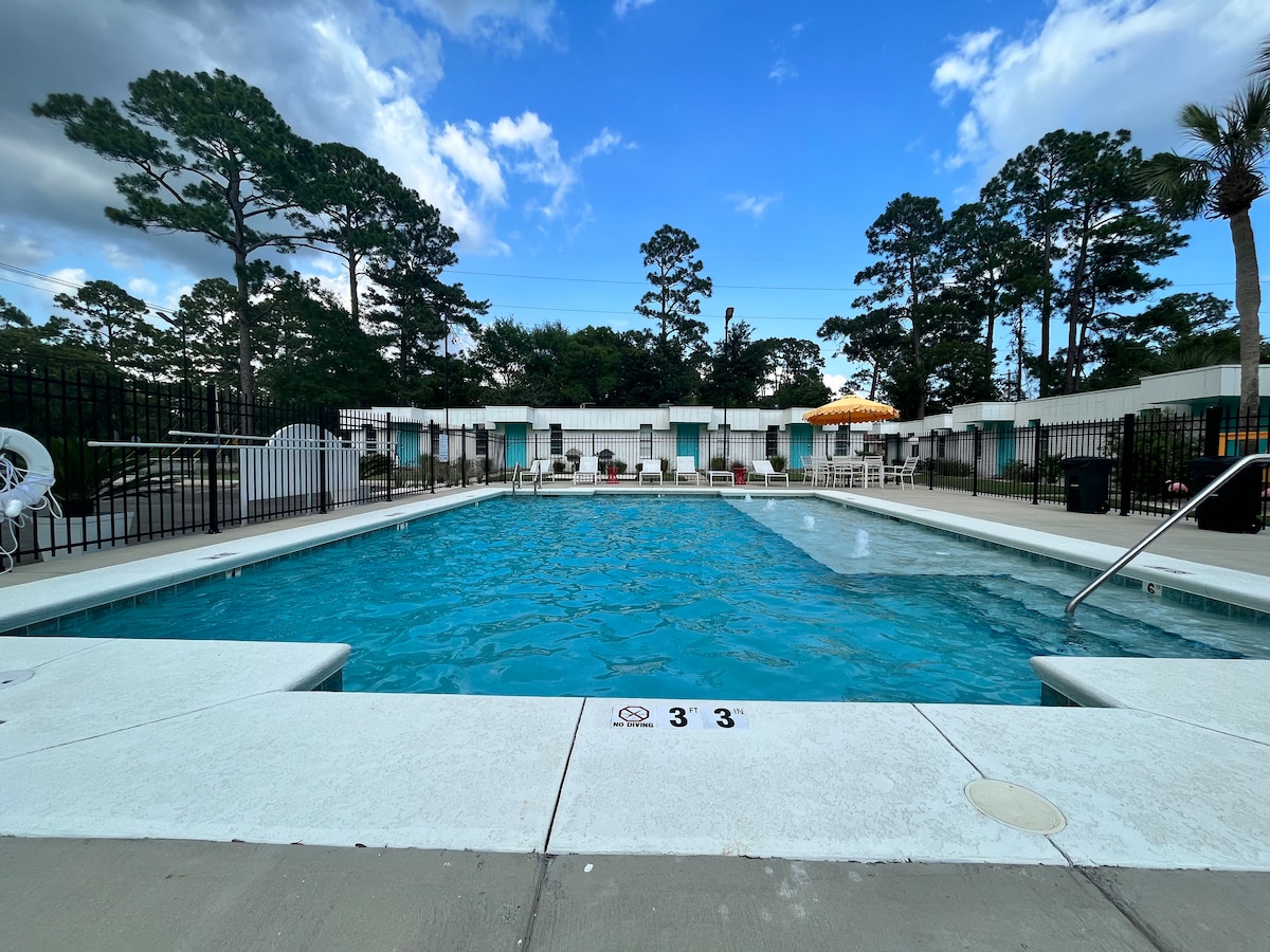 Krásný, klidný, relaxační penzion (dříve Whitneyho železářské studio). Soukromý vchod. V historickém East Hill, obklopeném klidnými, tyčícími se duby a pekanovými stromy. Francouzské dveře poskytují dostatek přirozeného světla a otevřený, vzdušný pocit. Soukromá terasa. Tichá, historická čtvrť – ideální na procházky nebo jízdy na kole. Pouze 1,2 míle od centra. V okruhu několika bloků jsou kavárny, restaurace, obchod s potravinami Publix, hospody. Snadná 15minutová jízda na pláž.