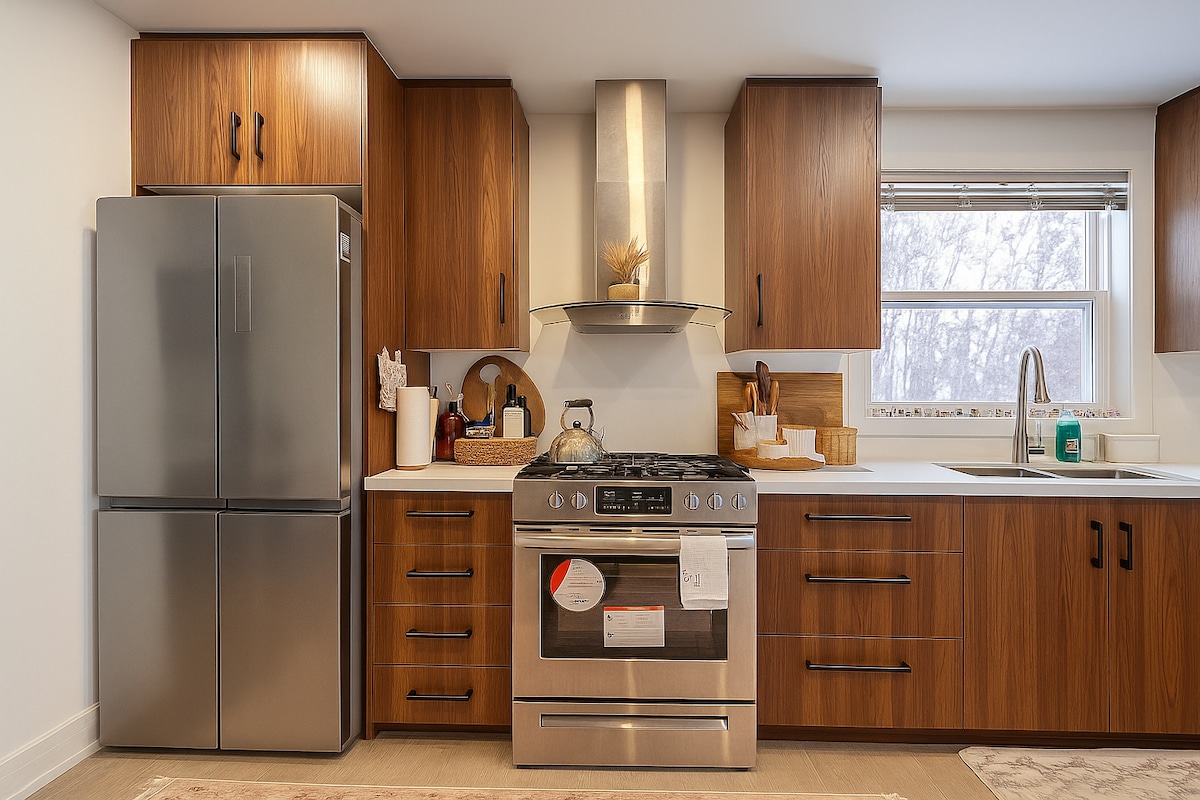 Vjeď přímo do své soukromé garáže a vstup do tohoto světlého, moderního apartmá se 2 ložnicemi. Nemusíš se obávat sněhu ani deště – a k dispozici je i nabíječka na elektromobil Tesla! Pohodlí: Útulný elektrický krb a chytrá televize Rychlá Wi-Fi pro práci na dálku / streamování Hlídané kryté parkoviště v ceně Nachází se v Oak Ridges, jen pár kroků od Grovewood Parku a několik minut od jezera Wilcox a zábavního parku Canada's Wonderland. Soukromé, moderní a nově zrekonstruované útočiště – ideální pro rodiny nebo služebně cestující.