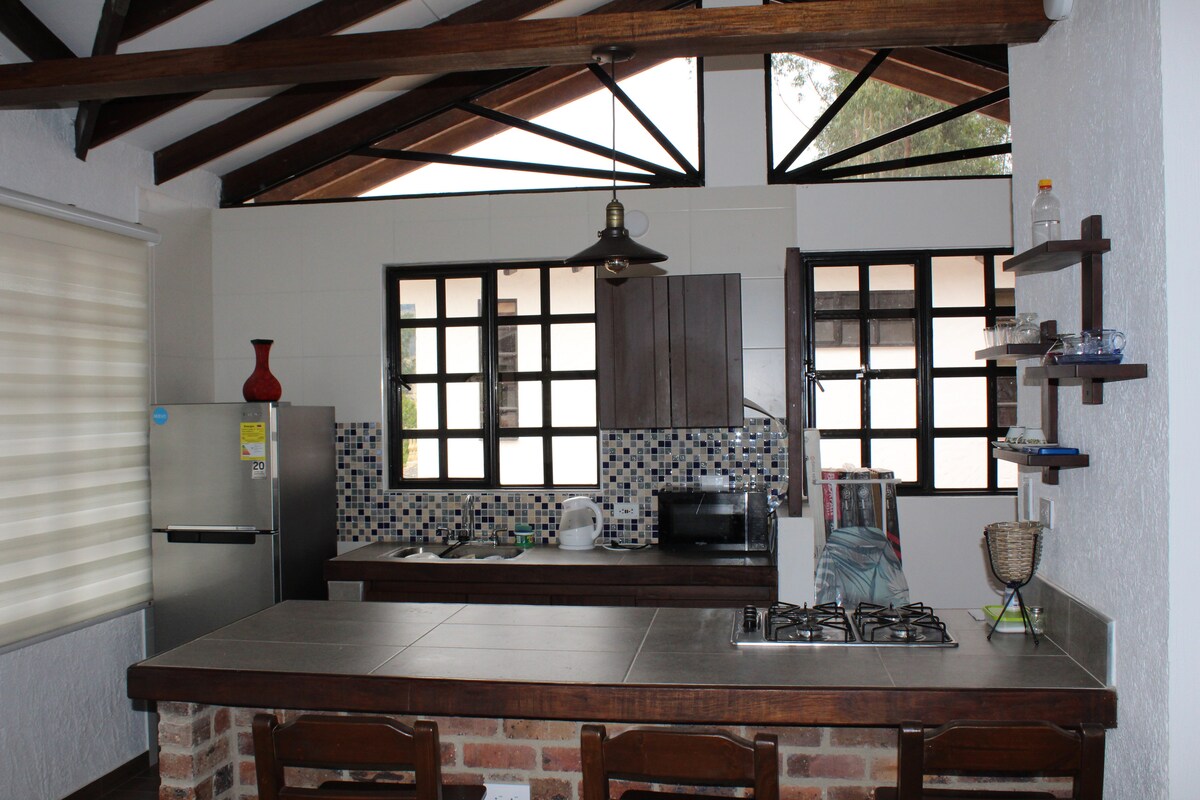 Užij si klid a spoj se s přírodou! Ensueños je chata se středomořským designem v přírodním prostředí, ale se všemi vymoženostmi. Nachází se 7 minut od termálních bazénů a jezera Sochagota de Paipa. Prostory: 🍽️ - Zásobená kuchyně 🚿 Soukromá koupelna s teplou vodou 🛏️ 1 samostatná postel a 1 dvoulůžko Chytrá 📺 televize 🛜 Wifi. 🅿️ Bezplatný přístřešek pro auto 🪻 Přírodní sousedství Registrační číslo 230546