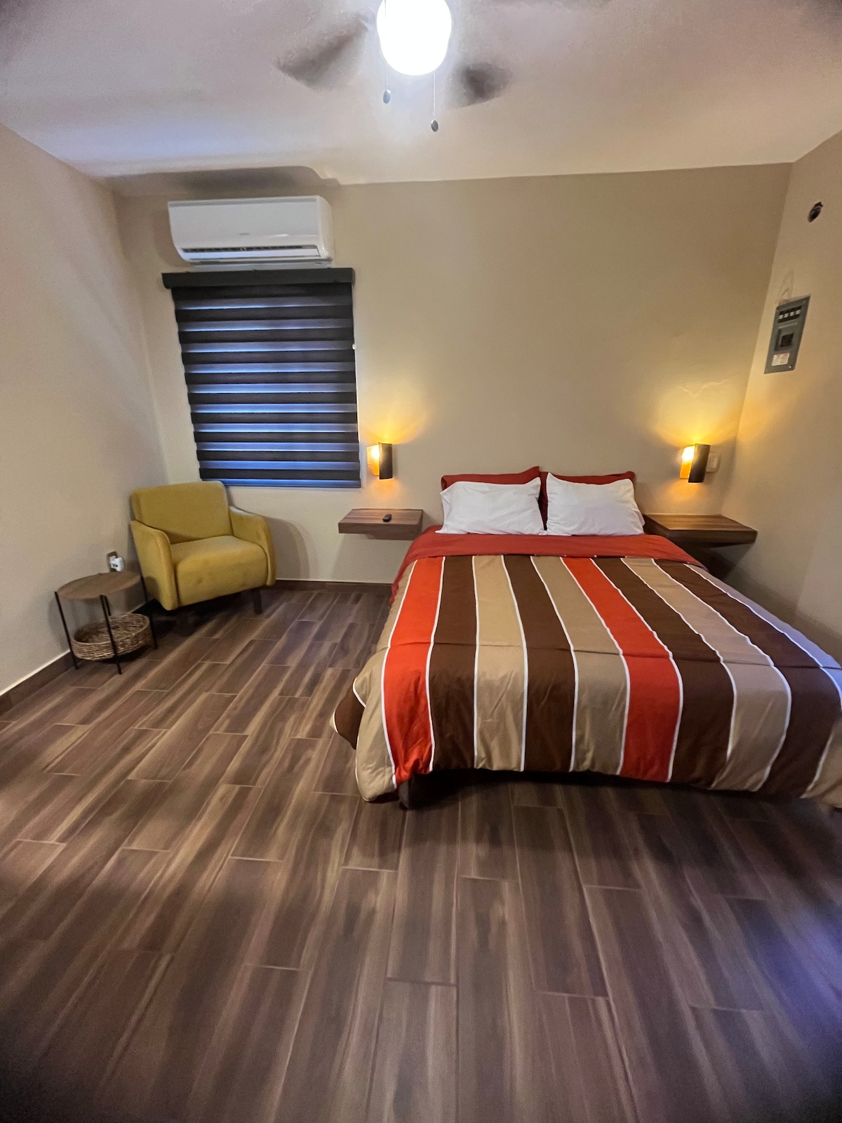Nový apartmán „Arenal 3“ s veškerým vybavením, které potřebujete k příjemnému pobytu. Ideální pro pracovní pobyty, odpočinek nebo dlouhé pobyty. Nachází se 3 minuty od letiště Tampico v kolonii Arboleda. Dodržujeme všechny nové protokoly o úklidu, mezi jednotlivými rezervacemi ponecháváme delší časový interval, abychom splnili všechny předpisy o úklidu. Apartmán má manželskou postel, mini-split, Smart TV, kuchyňský kout, minibar a vše potřebné pro vaření. Rezervujte si hned!