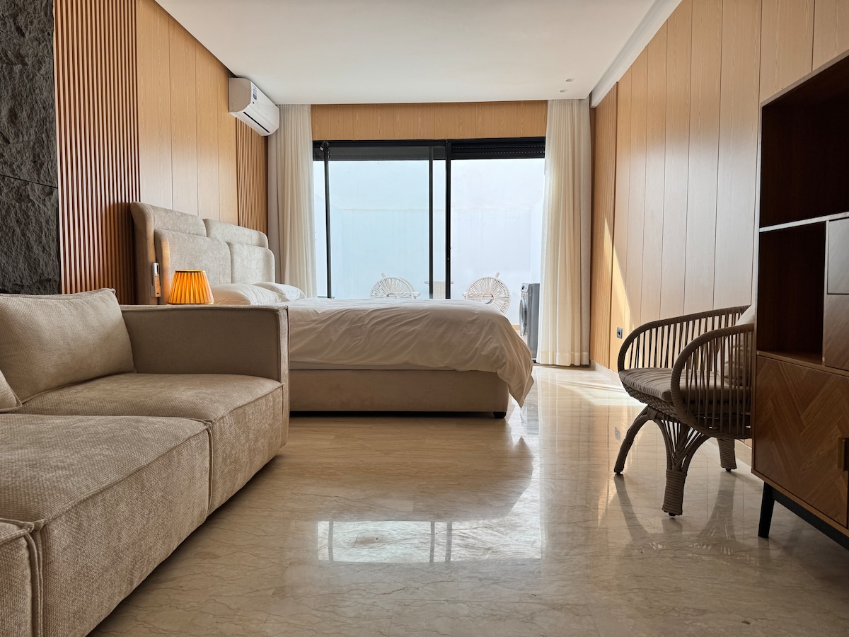 This sumptuous studio, worthy of grand luxury hotels, will allow you to relax in a cozy and elegant setting specially designed to offer you ultimate comfort. The 100 Mbps optic fiber WiFi and the 55" smart TV with access to IPTV will provide you with an exceptional experience. You'll be granted with chocolates at your arrival ! Our privileged location, only 5 minutes from the beach, will allow you to fully enjoy the city and the best restaurants in Casablanca.