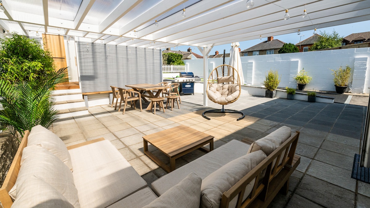 Garden Retreat se nachází na okraji Bournemouthu a Poole a v dosahu New Forest. Je to samostatná chata s 1 ložnicí, soukromým nádvořím a vířivkou. Garden Retreat je 2 minuty chůze od místního pubu/restaurace. Oceněné písečné pláže v Bournemouthu jsou asi 15 minut jízdy autem. Chata je vybavena klimatizací, dálkově ovládanými žaluziemi, vířivkou s náladovým osvětlením a wi-fi reproduktory, venkovní jídelní kout, lednicí, kombinovanou troubou, kávovarem a rozkládací pohovkou.