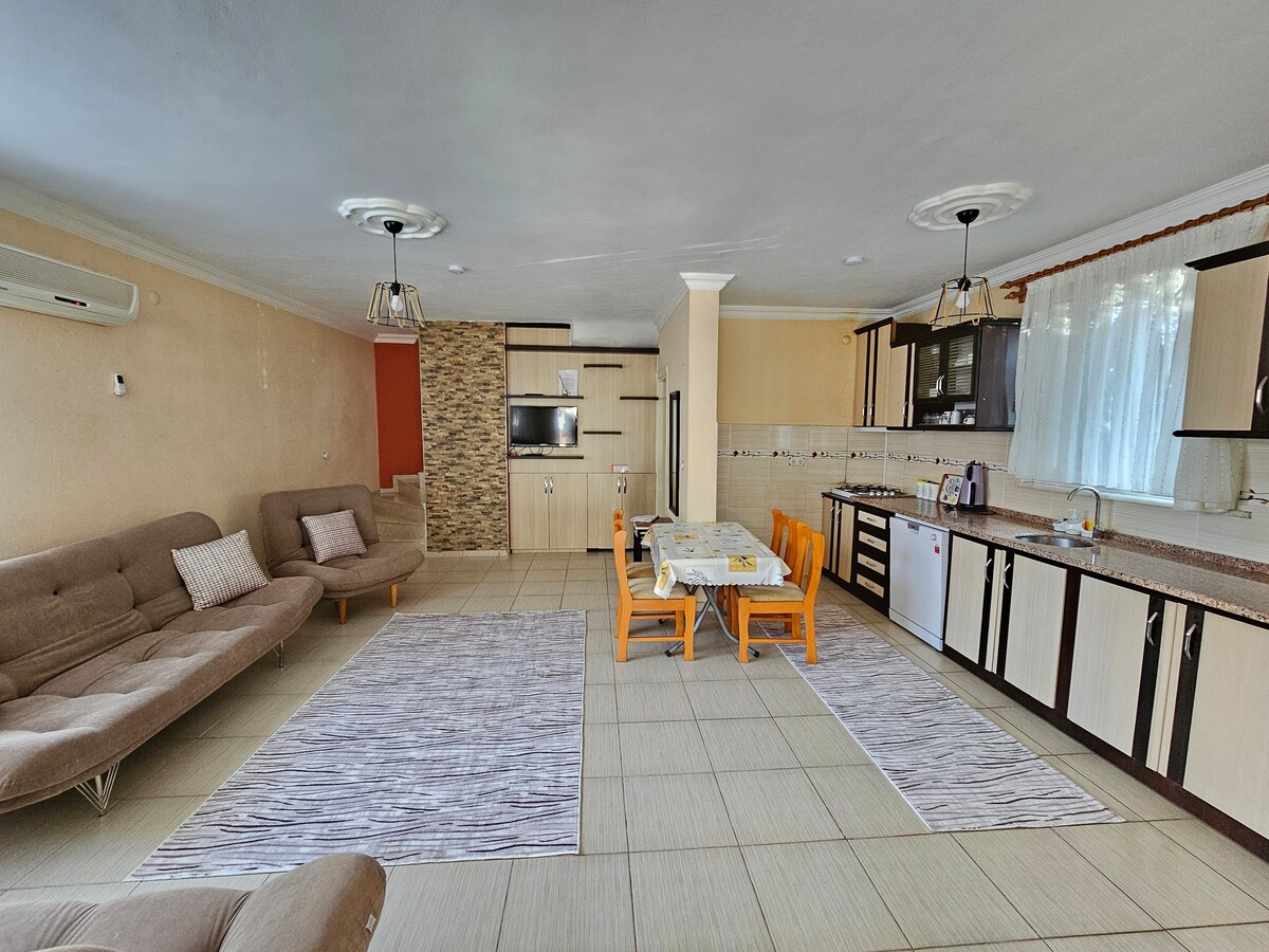 Jako rodina EnsVillas jsme rádi, že můžeme ubytovat tebe, naše vážené hosty, v našem apartmánu Ens. Náš dvoupatrový byt se nachází v zahradním patře naší dvoupatrové budovy mustakil a našeho apartmánu 1+1. It has a detached garden and patio where you can have a pleasant time. 3/4 minuty chůze k moři. You will need a grocery store,greeng grocery store, pharmacy,restaurant are 5/10 minutes walk away. Pokud se ubytuješ v tomto centrálně umístěném ubytování, budeš mít jako rodina blízko ke všemu.