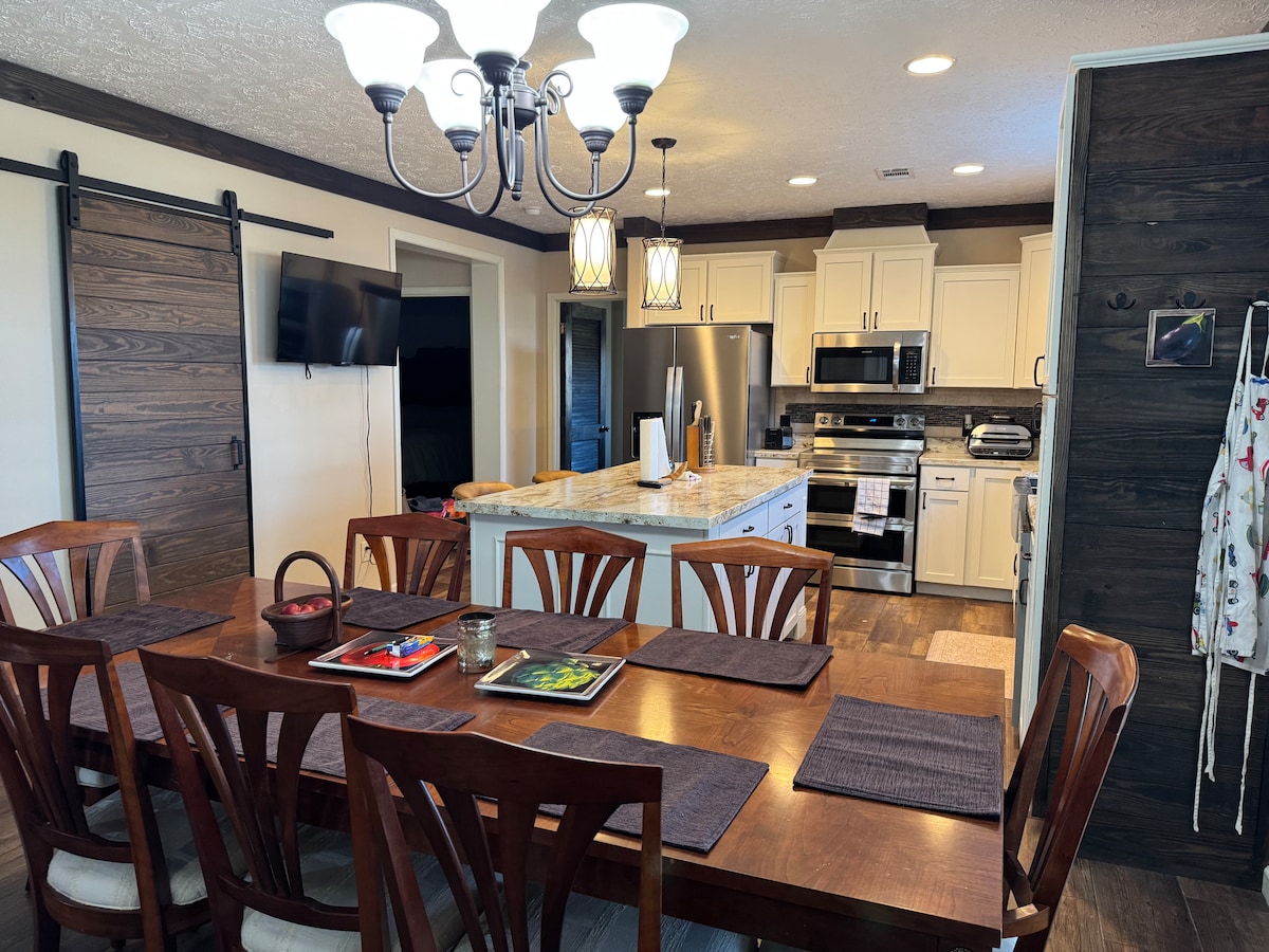 Uteč do našeho okouzlujícího statku. Ponoř se do luxusní postele velikosti king a dopřej si prostornou sprchovou kout. Velká prádelna přispívá k pohodlí. Popusť uzdu svému vnitřnímu šéfkuchaři v plně vybavené kuchyni. Užij si zábavu na 65palcové televizi se streamovacími službami v obýváku. Odpoj se od každodenního hluku. Znovu se spoj s tím, na čem záleží. Odpočiň si, omládni, vytvoř si trvalé vzpomínky.