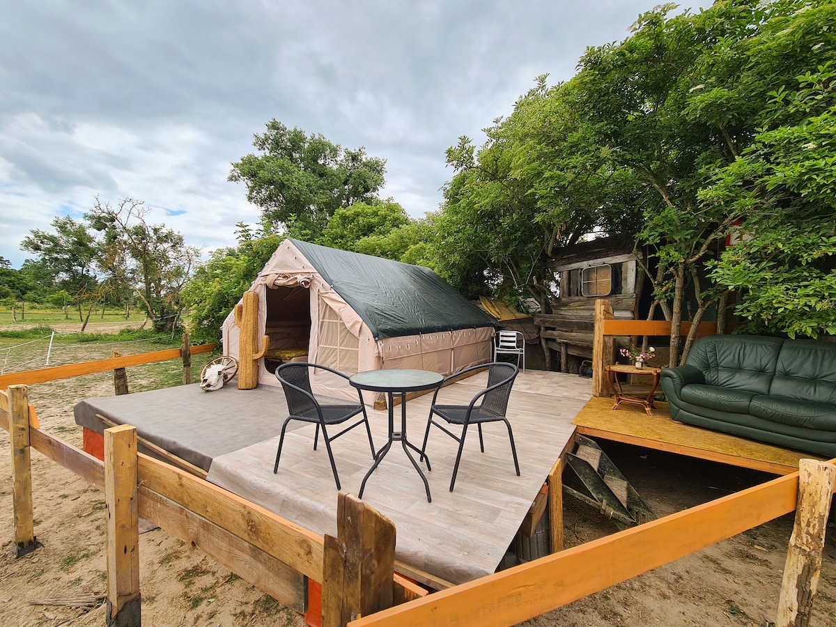 Tyto noci uprostřed přírody budou velmi speciálním vrcholem vaší cesty. Brzy ráno vás probudí ptačí zpěv a další zvuky přírody v tichém prostředí .Váš den by mohl začít snídaní na slunci na mé terase,můžete začít plánovat na celý den s kompletní relaxací. Pokud potřebujete spacáky, můžete si je ode mě půjčit za malý poplatek. Uklízím stan před každým novým hostem.