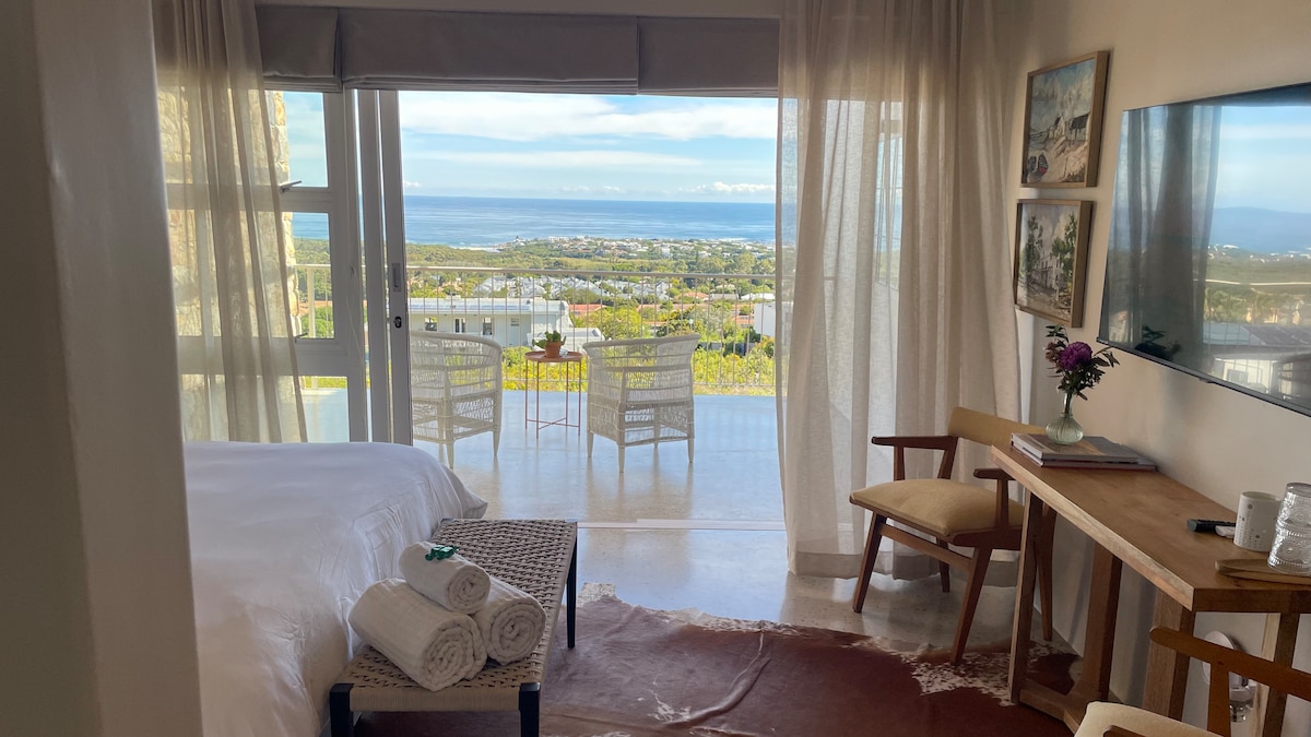 Welcome to this serene and spacious upstairs apartment - with a pool on the one side and a balcony with amazing sea view on the other side. The room itself is warm, cosy and arty. There is plenty of storage, places to sit and relax, access to the pool and safe off street parking. What I love about the room is the feeling you get when you're there... it seems to say 'you're on holiday.. relaaaaxx'. Other 2 apts on the property: /h/westcliff-pool-room-hermanus /h/westcliff-garden-room-hermanus