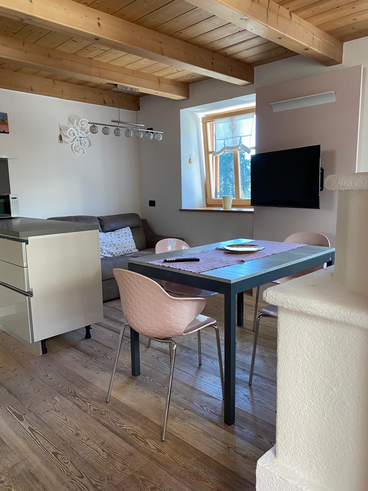 Dvoupokojový apartmán s ložnicí pro dva s balkonem (výhled na Brentské Dolomity), koupelnou se sprchovým koutem a obývacím pokojem se dvěma rozkládacími pohovkami (pro děti nebo mladé lidi), kuchyní a dřevěným stolem. Parkování je možné v soukromé zahradě. Kuchyně má veškeré potřebné nádobí, troubu, lednici, mrazák a čisticí prostředky. V apartmánu je také k dispozici ložní prádlo, prostěradla, přikrývky, polštáře a vysoušeče vlasů.