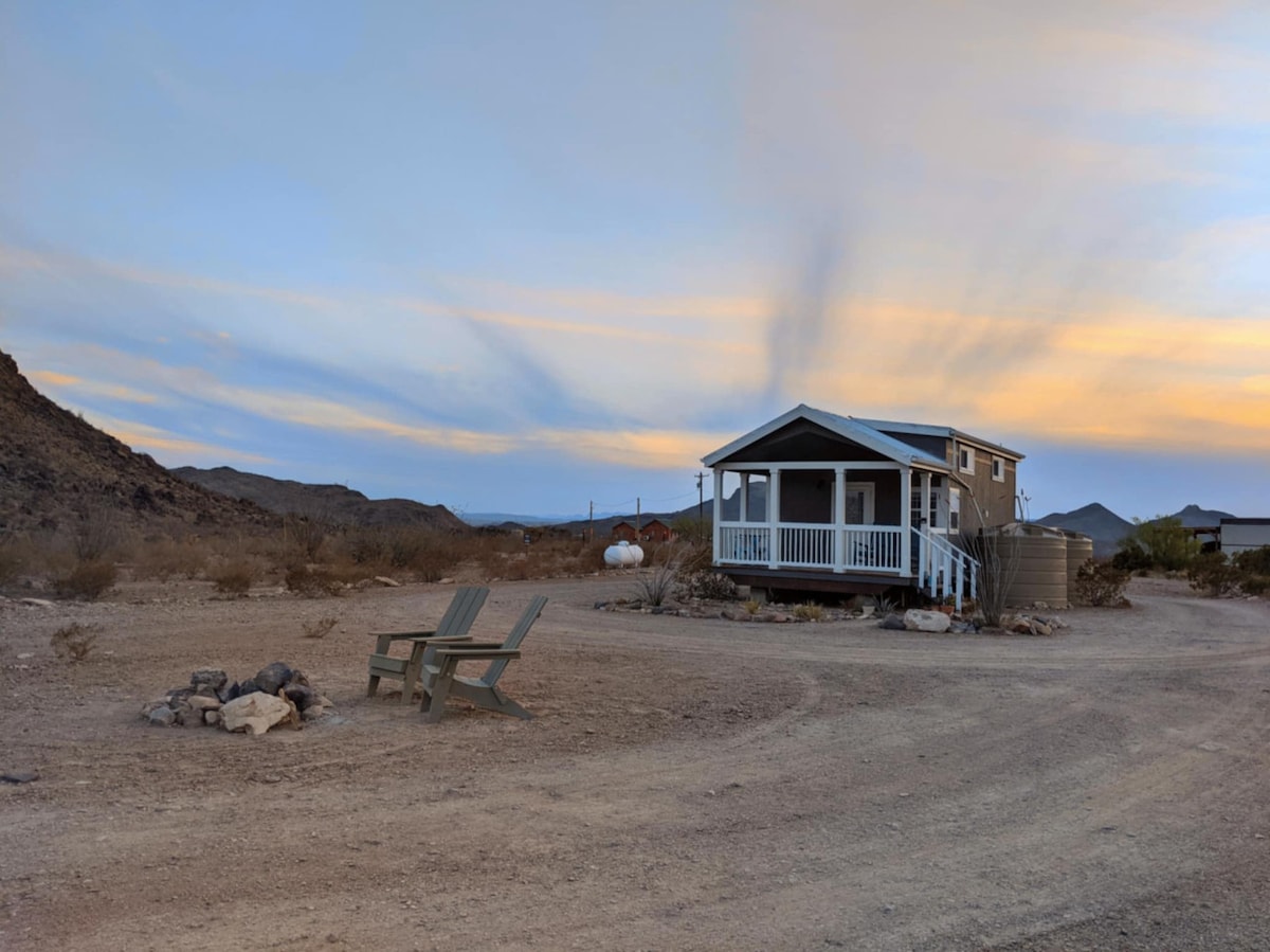 *10 MINUTES TO BIG BEND NATIONAL PARK *Private, but near everything! *Locally owned/operated! *324 sq ft charming Eco-friendly cabin for 2 adults (no kids) *COLD A/C, heat *Indoor&outdoor showers *Gas log fireplace *Super comfy Queen bed *Kitchenette *Full bath & clean compost toilet *Stunning views of Big Bend National park *Sustainable, SOLAR powered *Sunrise mountain views from your pillow *Incredible stargazing! *Come enjoy this unique desert gem, make memories of a lifetime!