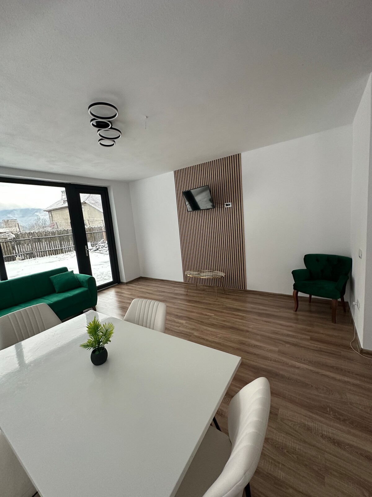 Objev pohodlí prostorného a moderního bytu, který se nachází přímo v centru Brezoi. Byt je plně zařízený a vybavený, ideální pro relaxační pobyt uprostřed přírody. Podrobnosti: • 1 světlá ložnice s manželskou postelí velikosti Queen, chytrá televize • Velkorysý obývací pokoj s pohovkou a rozkládací křeslem, chytrá televize • Plně vybavená kuchyň (lednička, trouba, mikrovlnná trouba, kávovar, myčka nádobí atd.) • Moderní koupelna se sprchovým koutem • Balkon s panoramatickým výhledem na hory