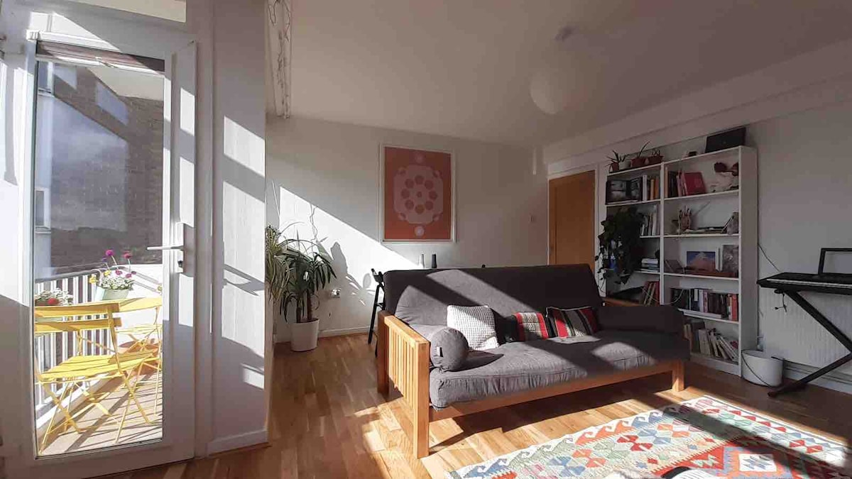 Tento byt se nachází v pěkném chráněném území, takže je tichý, ale stále jen pár minut chůze od všech obchodů, restaurací, kaváren, hospod a veřejné dopravy. Je nádherně světlý a slunečný a plně doporučuji sedět u předního okna, zatímco slunce proudí dovnitř a užívat si sklenku vína! Venku je pěkný okenní box, takže si klidně naber čerstvé bylinky.