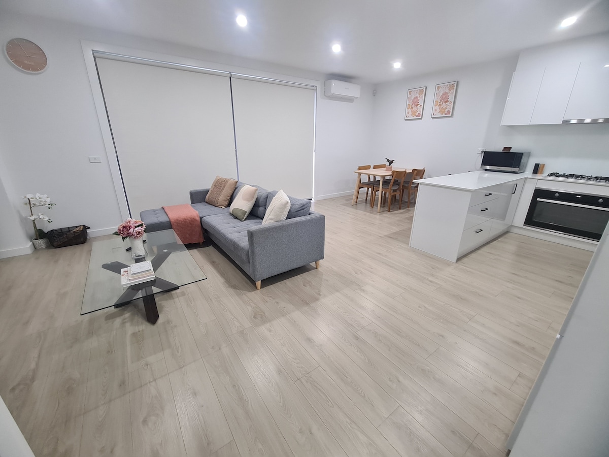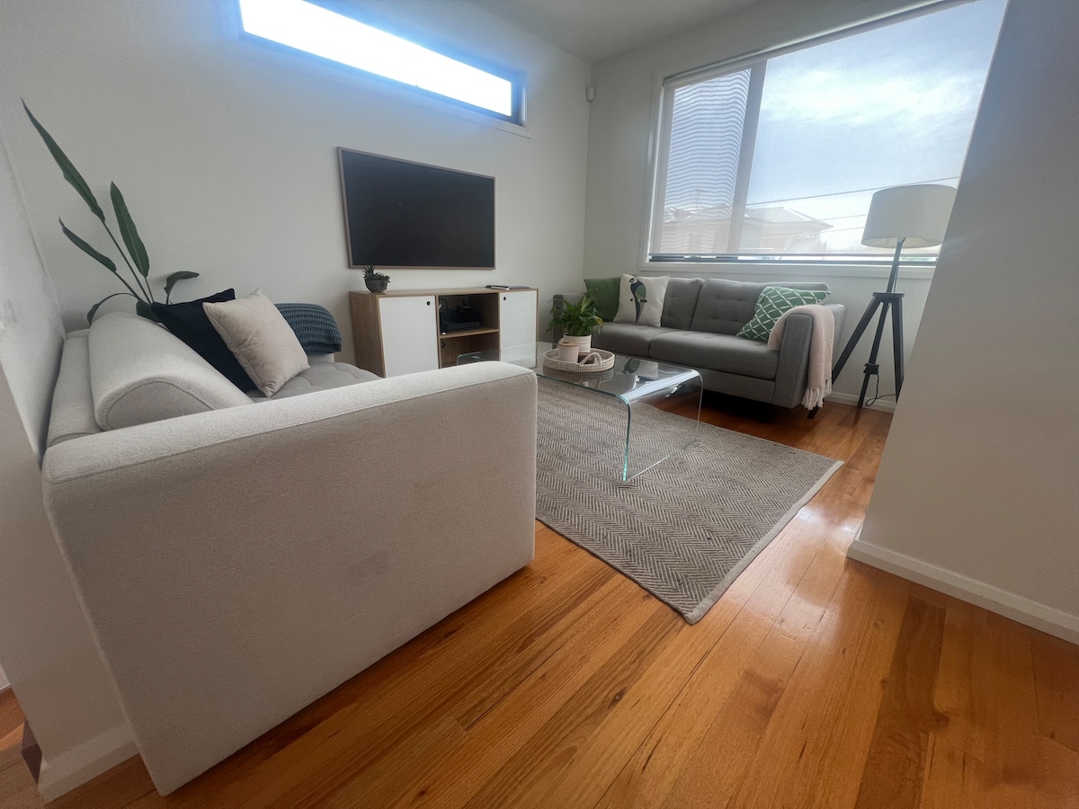 Skyline Sanctuary je útulné útočiště poblíž letiště v Melbourne, ideální pro krátkodobé nebo dlouhodobé pobyty. Užij si otevřený obytný prostor, 2 ložnice pro 2 osoby a luxusní koupelnu s prostornou sprchou a vanou. Zůstaň ve spojení díky vysokorychlostní Wi-Fi a Netflixu. Nachází se v blízkosti místních obchodů, nákupního centra Westfield a kaváren, které musíš navštívit, a nabízí pohodlí a pohodlné prostředí v přátelské čtvrti.