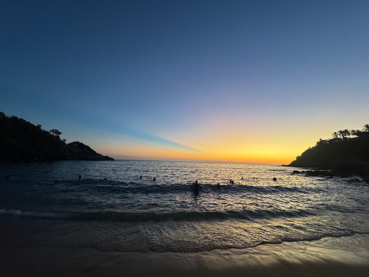 Útulný apartmá s manželskou postelí, chytrým televizorem, klimatizací, stropním ventilátorem, kuchyní, koupelnou a soukromou vířivkou. Užij si západy slunce a relaxuj při kontemplaci panoramatického výhledu na město, oceán a hory ze své vlastní vířivky. Nacházíme se v Punta Zicatela, 7 minut chůze od pláže, hlavního místa pro surfaře, restaurací, barů a nákupní zóny. Blízko všeho, ale daleko od shonu večírku. Máme Starlink internet.