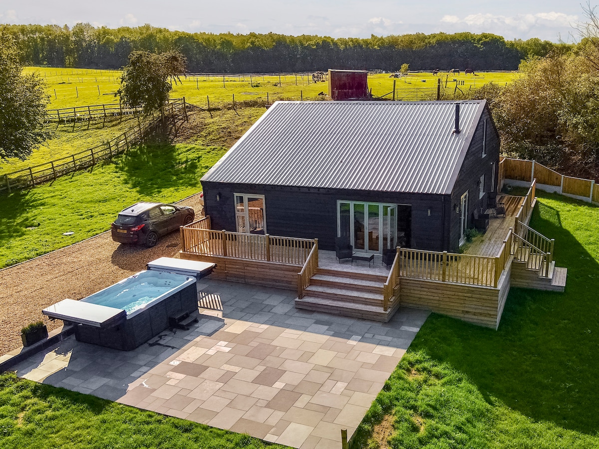 Soukromá venkovská chalupa s hottubem v blízkosti pobřeží.