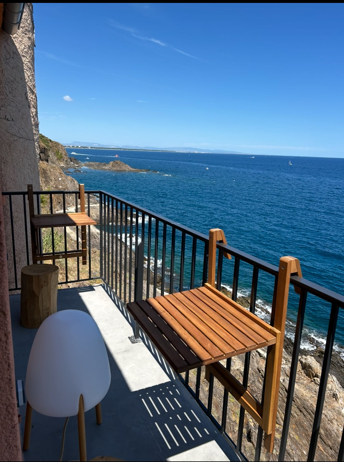 Située entre Collioure et Port-Vendres cette villa mitoyenne rénovée offre une vue exceptionnelle sur la Méditerranée et permet un accès direct aux criques et aux plages situées en bas de la résidence. Profitez d'un apéritif inoubliable le soir face à la mer en regardant le coucher de soleil! 2 terrasses de 30 m2 dont une sur la mer, plancha, cuisine équipée, coin repas, salon avec canapé convertible, 2 chambres, parking privé, WIFI. Draps et serviettes de toilette non fournis.