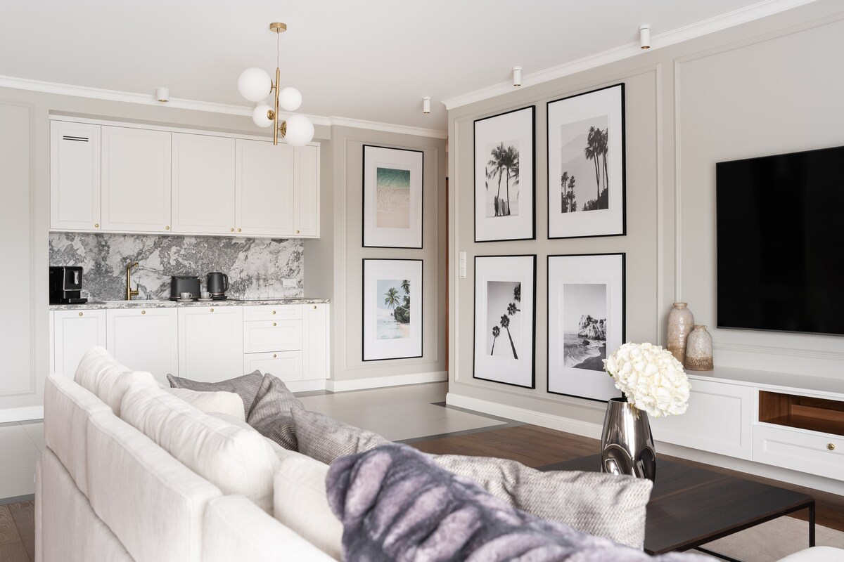 Moderní garsonka o rozloze 36 m2 se stylovým mezipatrem a balkonem. Ideální pro 2 osoby. Apartmán má plně vybavenou kuchyň, koupelnu se sprchovým koutem, manželskou postel Murphy a mezipatro se 2 samostatnými lůžky. V apartmánku jsou ručníky a ložní prádlo. Nemovitost zahrnuje přístup do luxusního bazénu, sauny a posilovny. Mezi oblíbená místa v okolí patří Zelená brána, Dlouhý most a Neptunova fontána. Nejbližší letiště je letiště Gdaňsk Lech Wałęsa, 8,7 mil od apartmánu.