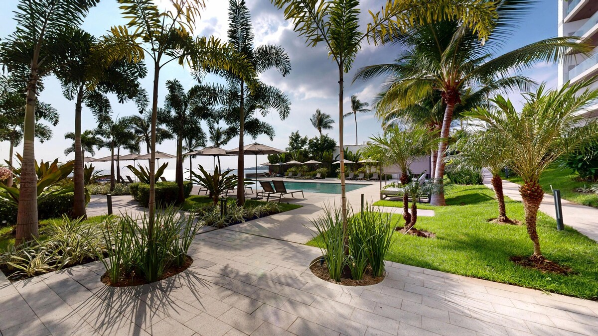 Nový luxusní byt na pobřeží v SRDCI Bucerías (Centro), ideální pro západy slunce a nezapomenutelné pobyty. Pár kroků na pláž a nespočet restaurací, barů a živé zábavy! Nachází se ve vysokém patře s balkonem po celém obvodu a dechberoucím 180stupňovým výhledem na oceán. Automatické žaluzie (stiskni tlačítko a vychutnej si výhled) a velké posuvné dveře vytvářejí plynulý přechod mezi vnitřním a venkovním prostorem. Nekonečný bazén na střeše, vstup do plážového klubu, posilovna, nepřetržitá ostraha a soukromé parkování. Výjimečný zážitek přímo na pláži.