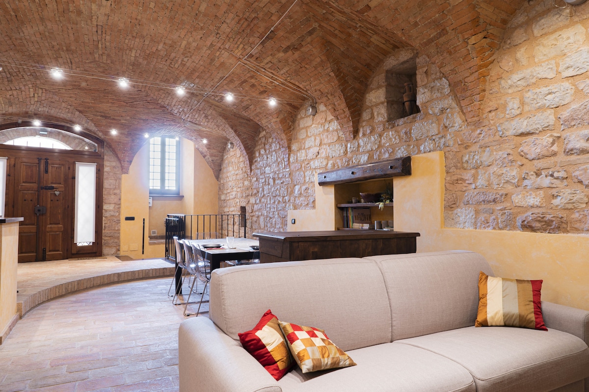 - Apartmán ve starobylém paláci v historickém centru Bevagna, s terasou s výhledem na okolní kopce. - Apartmán se skládá ze 2 pohodlných pokojů, 1 koupelny, 1 kuchyně a 1 velké obývacíhoj s krbem. - Pouze 5 minut (pěšky) od Porto Romano, kostela San Silvestro a autobusové zastávky. - Apartmán je také vzdálen 10 minut od Foligno, Spello a Montefalco, 15 minut od Assisi a 30 minut od Perugie (autem). - Pohodlný, světlý a vkusně zařízený.
