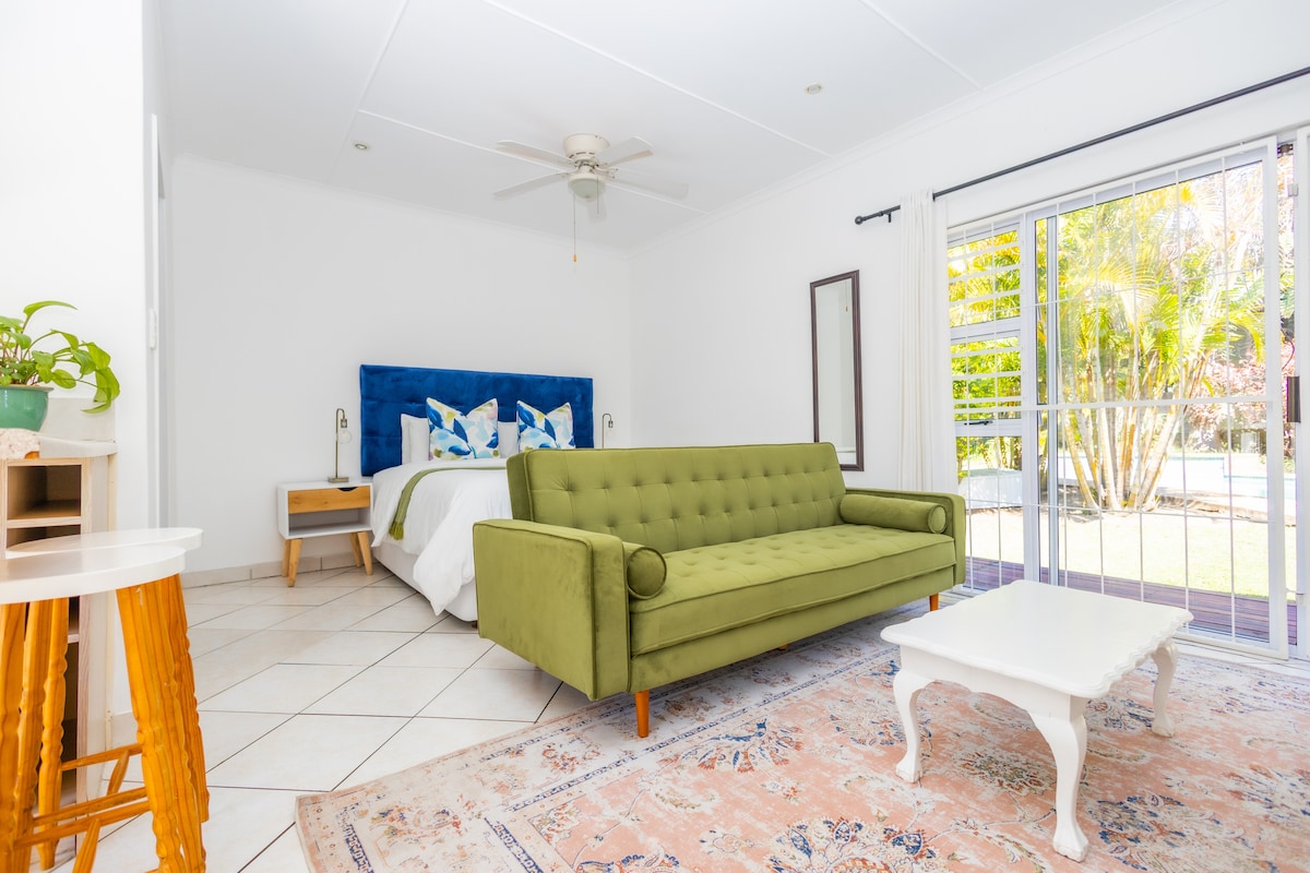 Nachází se v klidné ulici lemované stromy v Nahoon Mouth. Náš otevřený plán pro hosty nabízí postel velikosti Queen s vysoce kvalitním bavlněným ložním prádlem, neomezenou wifi, HD smart TV, plnou DSTV a záložní baterii pro odlehčení zátěže. Dobře vybavený kuchyňský kout se sporákem a troubou usnadňuje vlastní stravování. Pro ty, kteří mají rádi chůzi a běh, jsme jen 2 km od řeky Nahoon a pláže. Spar a výběr skvělých restaurací a kaváren jsou také jen pár kroků daleko.