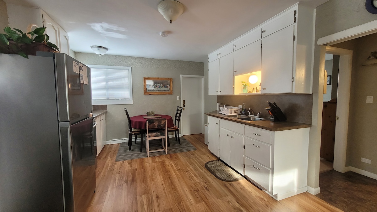 Klidné útočiště u jezera. Jedná se o suterénní apartmá s vlastním soukromým vchodem. Může se pochlubit klidnou krásou a útulnou atmosférou vytvořenou s vnitřní kamny na dřevo, prostornými palubami a ohništěm s výhledem na jezero. Mnoho outdoorových aktivit, včetně bruslení, rybaření na ledu a jízdy na sněžných skútrech v zimě a paddleboardingu, jízdy na kajaku atd. v létě, plus nekonečné úžasné západy slunce. Vezměte si knihu a sedněte si k ohni, nebo si užijte kulečník. Naším cílem je, abyste si odpočinuli, cítili se pohodlně a užili si pobyt!