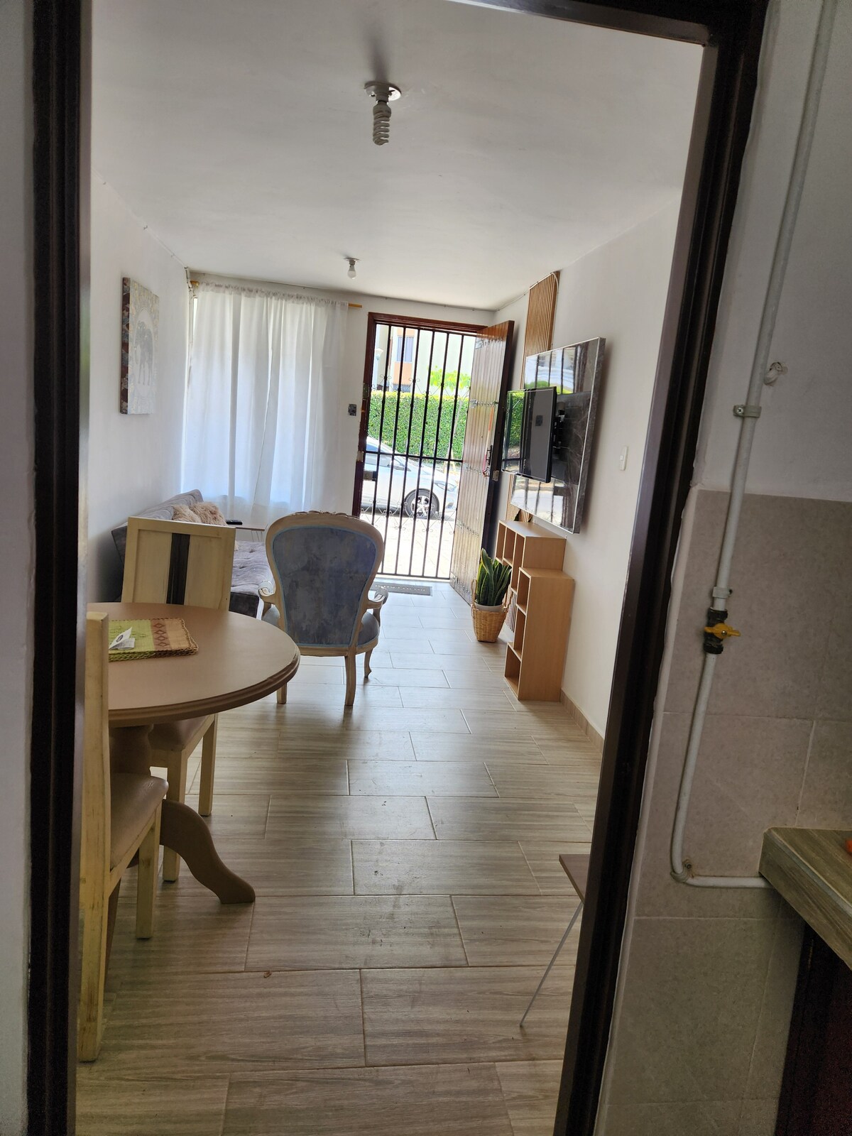 This comfortable 50m² apartment is located in the most exclusive area of Buga, a quiet and beautiful neighborhood, just one block from El Albergue Park. The atmosphere is very safe and welcoming. From the apartment, you are a 6-minute drive or a 20-minute walk from the Basilica.