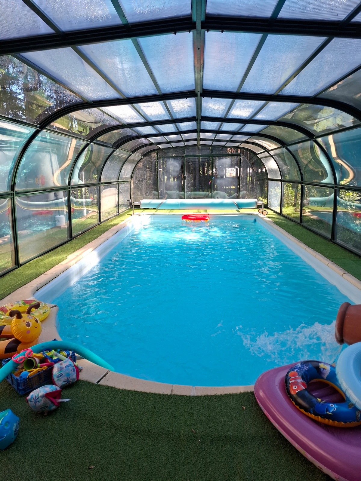 V srdci malé osady, na zalesněném pozemku o rozloze 3000 m², velký tichý dům včetně chalupy pro 4/5 osob V okolí je spousta aktivit: turistika, horská cyklistika, vodní plochy. Obklopen/a 5 rodinnými lyžařskými středisky, lyžování, sáňkování, surfování tě potěší Několik minut od vesnice, kde jsou veškerá občanská vybavenost Jaká relaxační a osvěžující dovolená. UPOZORNĚNÍ! Bazén a vířivka jsou v provozu pouze tehdy, když to venkovní teploty dovolí