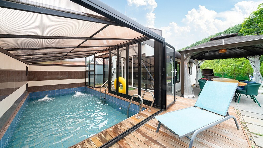 Prostorné soukromé útočiště zasazené do klidné přírody Gapyeongu, které nabízí dokonalé prostředí pro nezapomenutelné chvíle. Probudíš se za teplého slunečního světla a zakončíš svůj den pod oblohou přetékající hvězdami. S více než 165 metry čtverečních vnitřního prostoru a více než 1 300 metrů čtverečních venku je ideální pro rodinné pobyty, setkání s přáteli a workshopy. Promyšlené vybavení a vřelá pohostinnost čekají na tebe, aby byl tvůj čas s blízkými ještě smysluplnější a příjemnější.