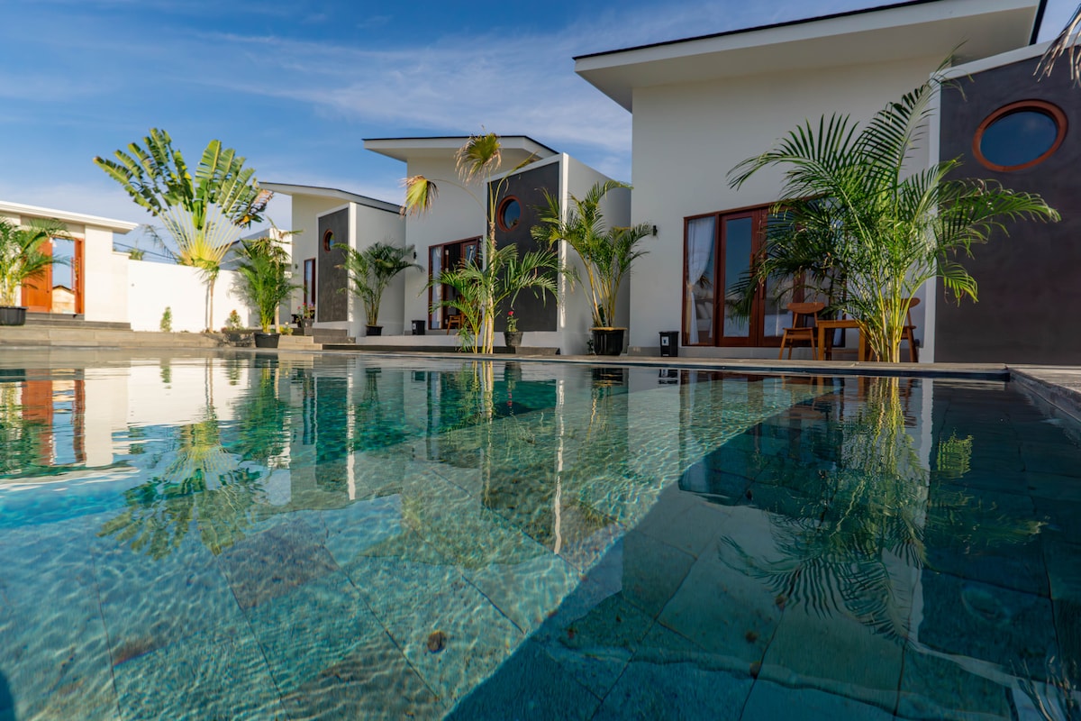 Discover a modern and comfortable stay in a peaceful setting, featuring spacious rooms with private terraces and a refreshing swimming pool. Perfectly located just minutes away from Bali’s most iconic destinations—Dreamland Beach, Melasti Beach and GWK Cultural Park. Enjoy free high-speed WiFi, 24 hours CCTV surveillance , so you can feel safe and at ease. Whether you are here for a holiday getaway or a longer stay, we’d love to host you!
