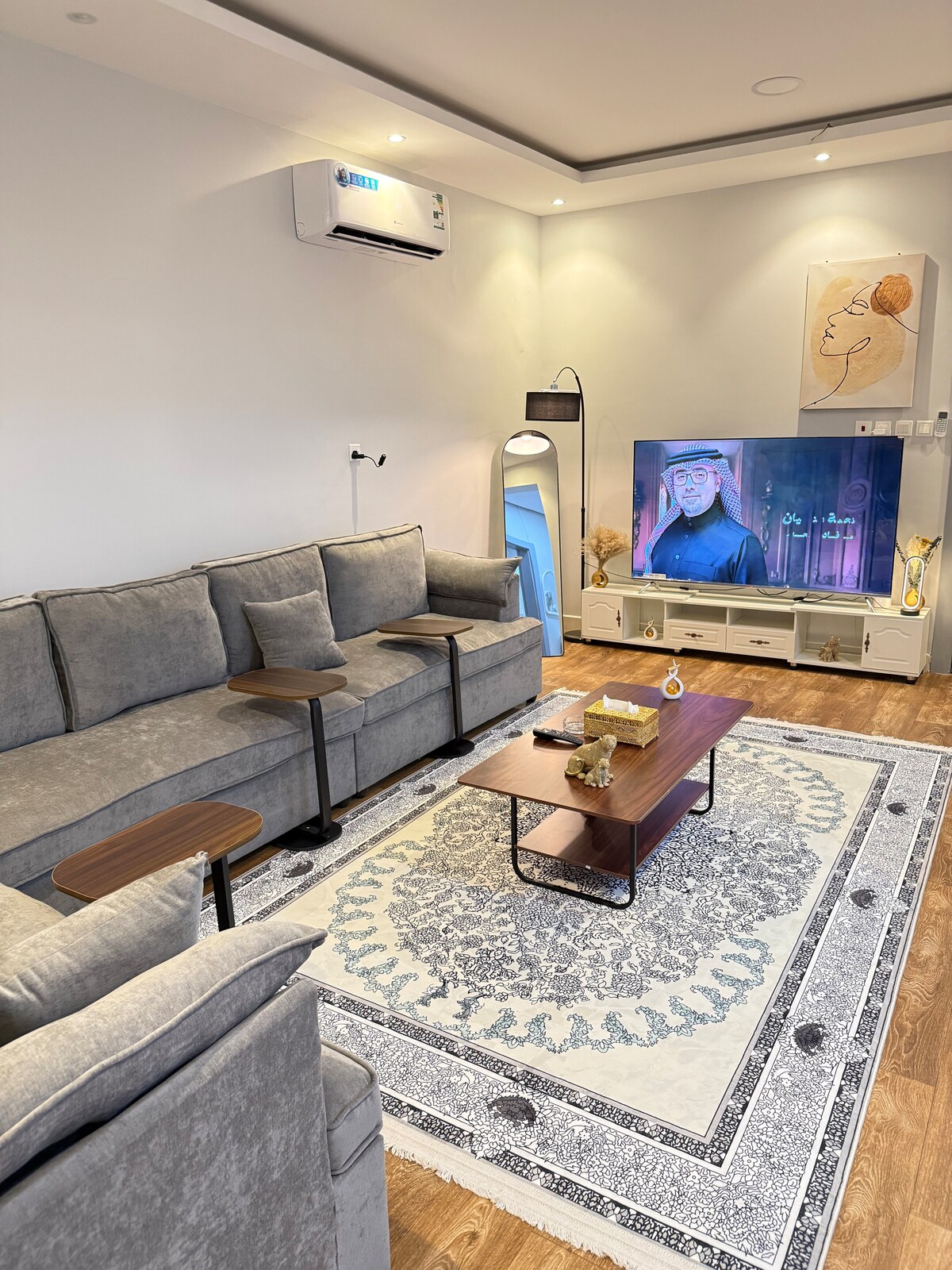 Luxusní apartmán v prvotřídní lokalitě ve čtvrti Al-Fayziyah v Qassimu, jen 20 minut od letiště a 5 minut od nákupního centra Al-Nakheel, a v blízkosti všech služeb, restaurací a obchodů. Byt má moderní design a elegantní výzdobu, včetně soukromé ložnice a prostorného obývacího pokoje s pohodlným nábytkem a velkou televizí. K dispozici je rychlá wifi, soukromé parkoviště a luxusní 5hvězdičkový vchod do hotelu. Zahrnuje také malou kuchyňku pro přípravu kávy a občerstvení, s pohodlným posezením a teplým osvětlením. Ideální volba pro krátkodobé nebo dlouhodobé pobyty, která kombinuje pohodlí, soukromí a dokonalou polohu.