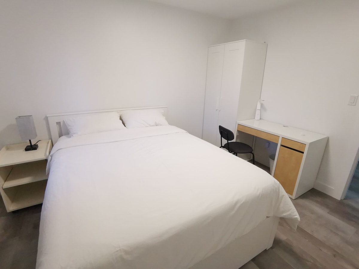 Vítej ve svém útulném útočišti v krásném North Burnaby. V případě potřeby se podívej na naši nabídku se dvěma ložnicemi: airbnb.com/h/marsdentwo Tento nově zrekonstruovaný apartmán v přízemí nabízí klidný pobyt v bezpečné, pěší čtvrti - jen pár minut od turistických stezek Burnaby Mountain, SFU a tranzitu. Prostor je navržen s minimalistickým nádechem a je ideální pro sólo cestovatele, páry nebo pracovníky na dálku, kteří hledají pohodlí, klid a pohodlí.