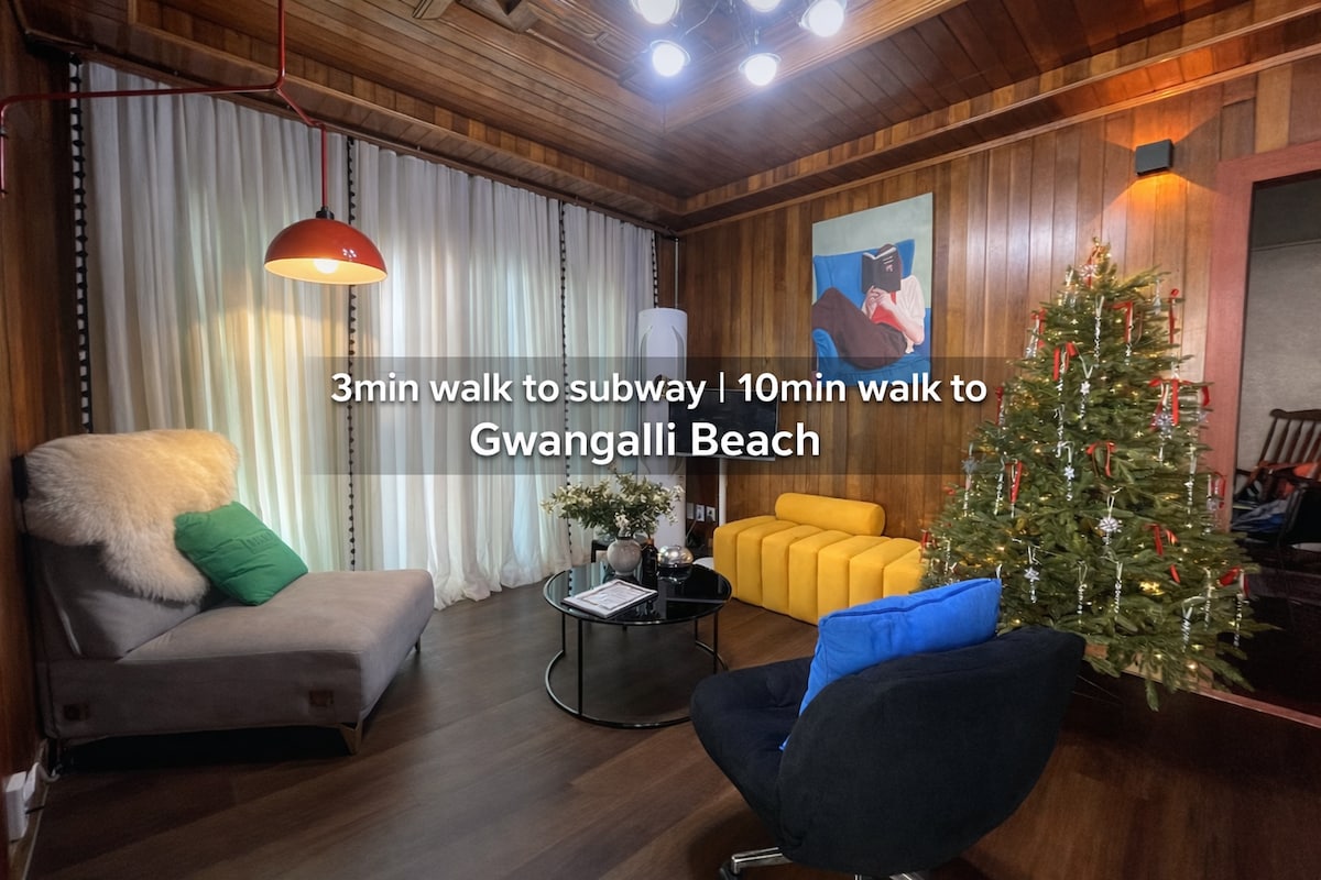 5 minut od stanice Kwangalli # dvoupatrové # obrovská obrazovka a projektor # velká televize # Netflix # sauna z cyprusu # parkování # čistota # Gwangalli