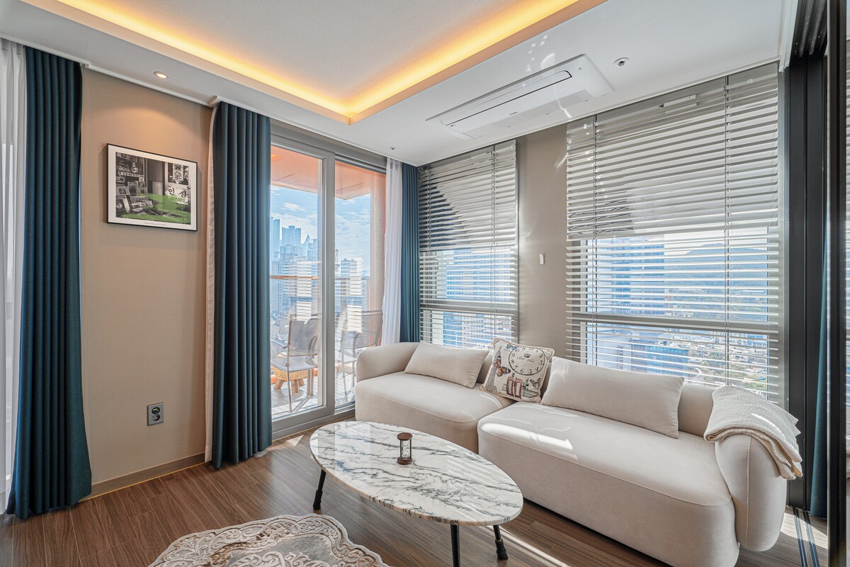 Se1 3dh#Žijte měsíc#Výhled na oceán z vysokého patra #75palcová velká televize #Květinová zóna #Bezplatná pračka se sušičkou#3 minuty od stanice Haeundae