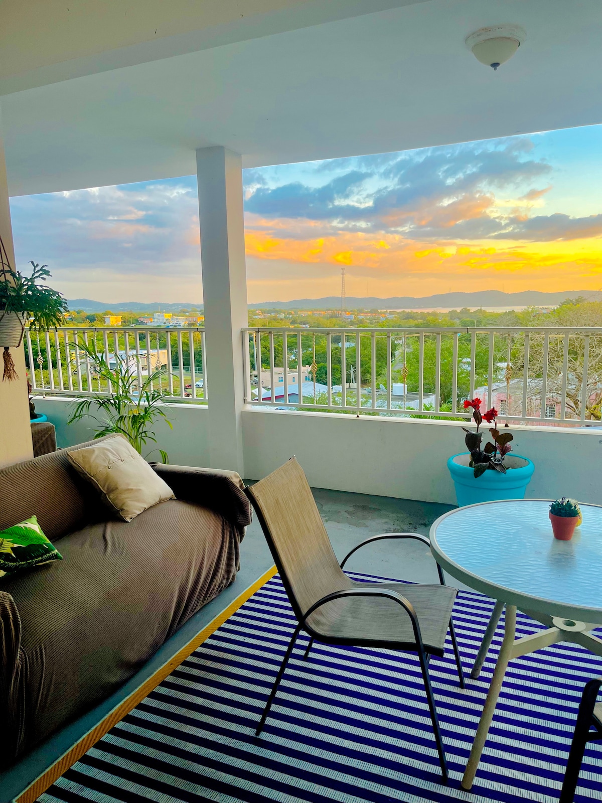 Střešní byt s tropickým západem slunce