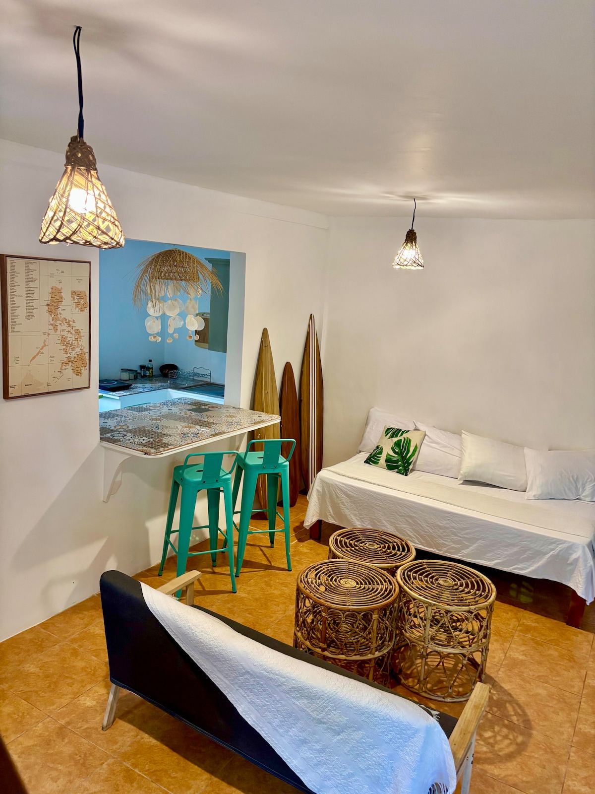 Můj stylový podkroví za naší vilou s názvem Casa Maligaya nyní otevírá své dveře pro rezervace. Podkroví se nachází přímo v srdci centra města El Nido a nabízí 6 m vysoké stropy, velkou plovoucí postel a 100“ televizi, která je jako kino. Nabídka je určena pro 2 hosty, ale může být také spojena s celou vilou, aby se celková kapacita zvýšila až na 8 hostů :)