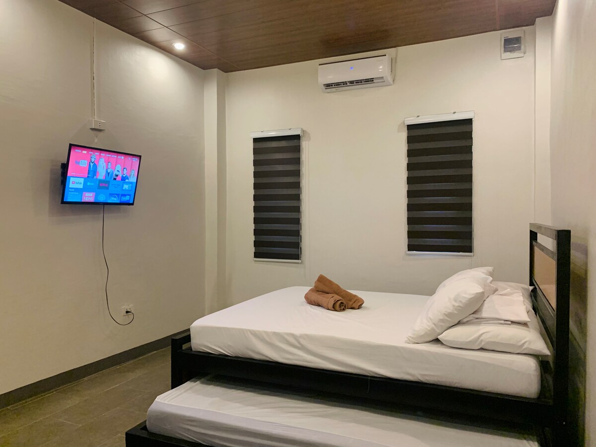 We are located at the heart of General Tinio along Bonifacio St., Brgy. Poblacion West. Máme celkem 8 pokojů. Všechny jsou s klimatizací a samostatnými koupelnami. Všechny postele jsou velikosti queen size. Naše maximální kapacita na pokoj jsou 2 dospělí a 2 děti, ale máme zásoby pro matrace navíc, které mohou být umístěny na podlaze pro další hosty v pokoji. 4 z našich pokojů jsou s garáží a 4 jsou bez.