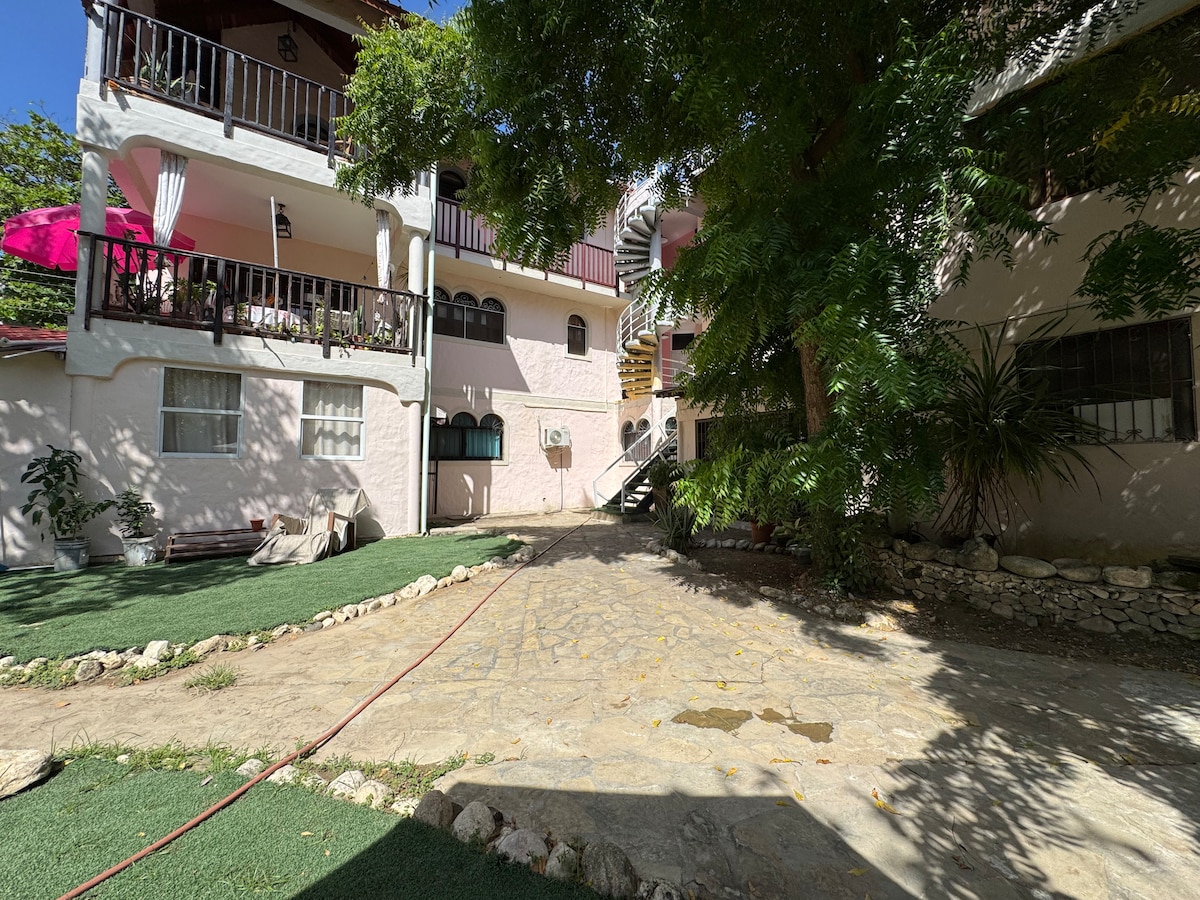 Probuď se v útulném bytě jen 2 minuty od pláže. Vychutnej si ranní kávu na soukromém balkóně a odpočiň si na střeše s měkkou umělou trávou a panoramatickým výhledem. Ideální pro páry, sólo cestovatele nebo pracovníky na dálku, kteří chtějí být blízko oceánu a živých restaurací, barů a surfařských míst v Cabarete.
