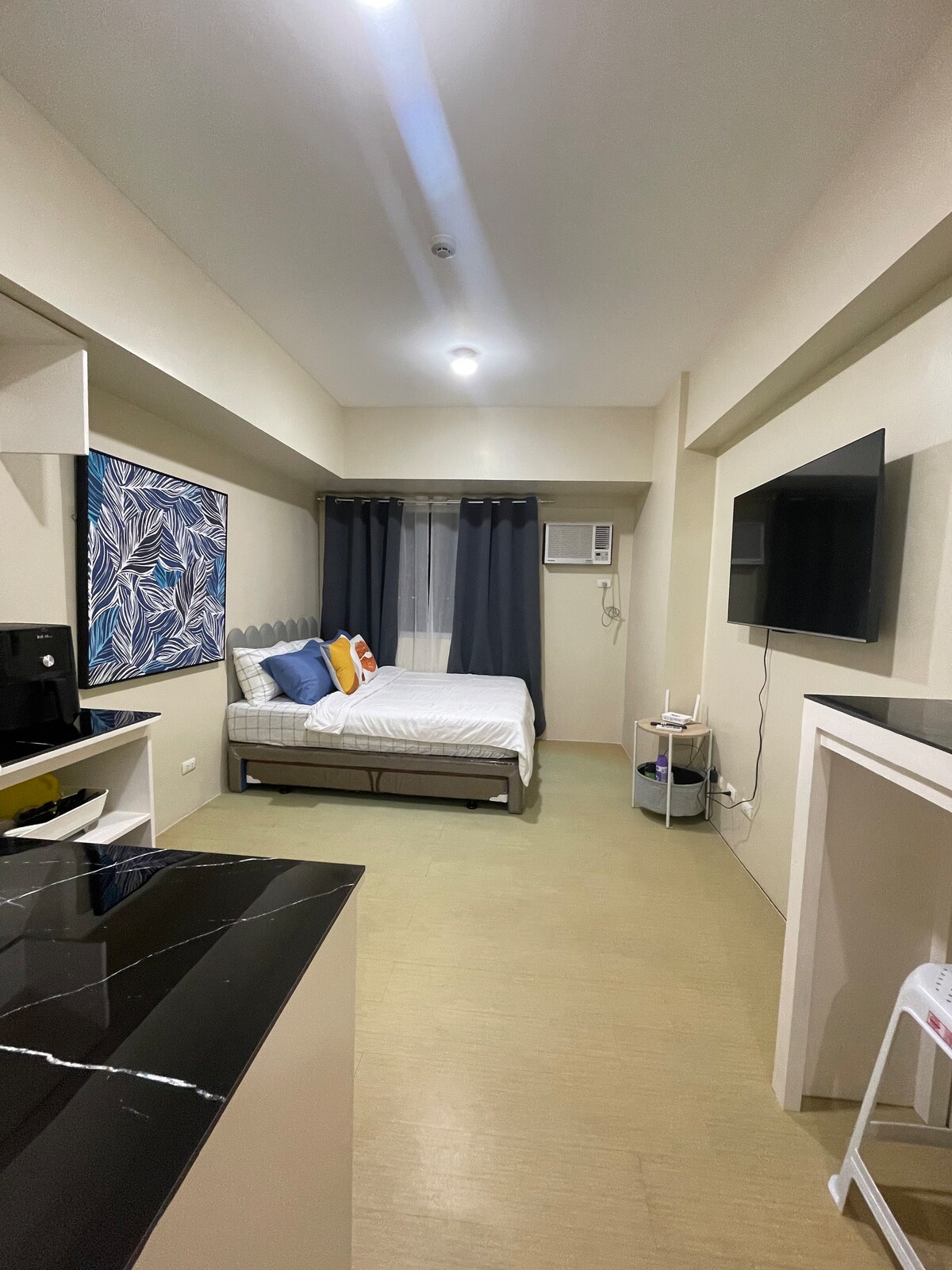 Dobře udržované studio (pro 3 osoby) v centru města poblíž nákupního centra Ayala Centrio. Ve 4. patře s manželskou postelí velikosti KING a rozkládací pohovkou. Vybaveno vysokorychlostním Wi-Fi (200 Mbps) Globe Parafiber, Smart TV a Netflix. Koupelna s bidetem, ručníky hotelové kvality, sprchovým gelem a šamponem. Plně vybavená kuchyně s kompletním nádobím a ZDARMA galon pitné vody. S výhledem na super pěkný bazén (bazén pro dospělé a děti). V blízkosti jsou restaurace, prádelny, nonstop večerky a bary. Zarezervovat nyní🎖️