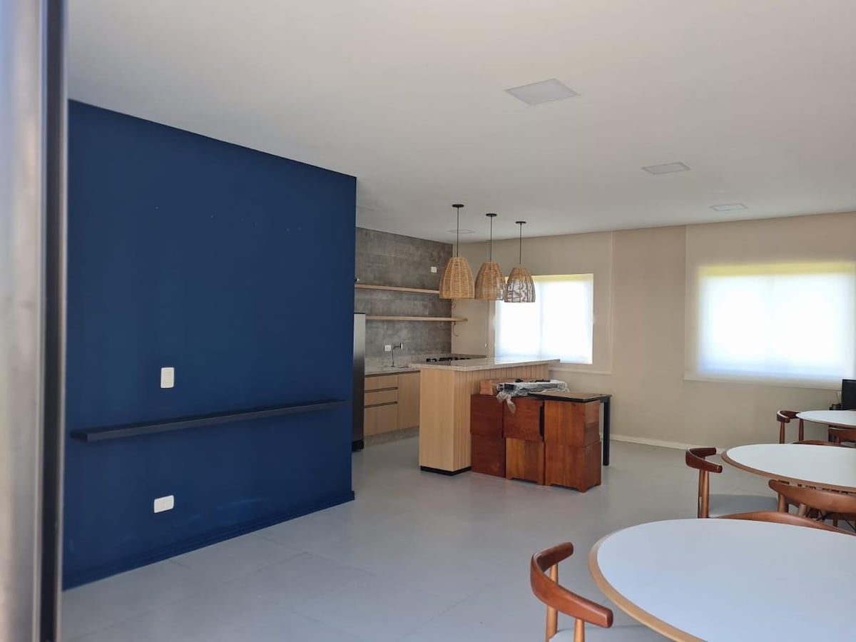 Divirta-se com a sua família neste lugar cheio de estilo, novinho e cheiroso bem próximo à praia. É um espaço bem equipado com 2 quartos com ar condicionado, um banheiro, máquina lava e seca, camas aconchegantes, roupas de cama, toalhas e utensílios de cozinha, tudo para momentos de conforto e descanso. Espaço para suas crianças brincarem e se divertiram na piscina ou em quadra de esportes. Academia com esteira e bicicleta ergométrica. Banheiros auxiliares na área da piscina que ficam próximos.