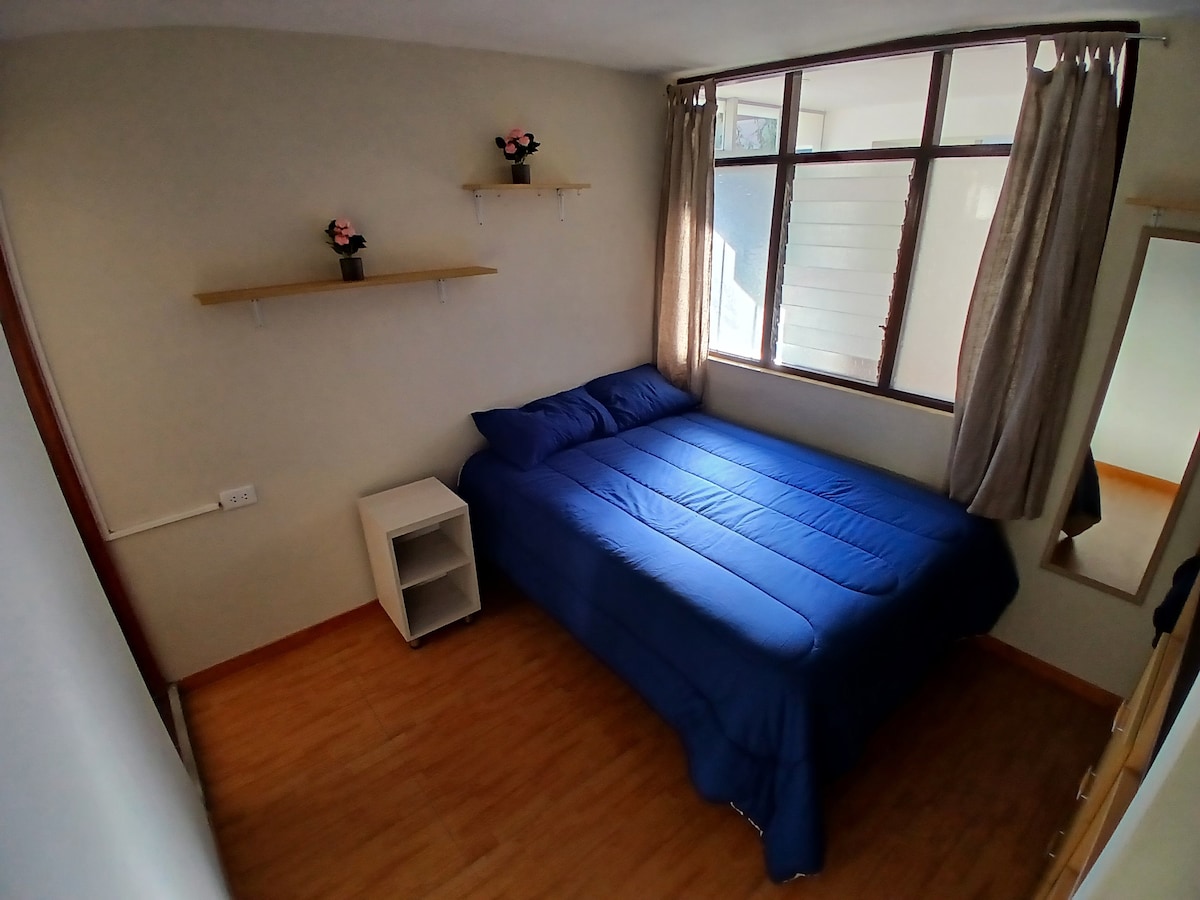 Užij si pohodlný a centrální pobyt v Cajamarcě. Náš útulný byt se nachází v centru města, v blízkosti restaurací, náměstí, bank a obchodů. Má 1 ložnici, kuchyň a jídelnu, ideální až pro 4 osoby. Ideální pro páry, malé rodiny, turisty nebo služebně cestující. Zahrnuje WiFi, teplou vodu, vybavenou kuchyň, televizi a veškeré základní vybavení. Čistý a bezpečný prostor s dobrým přirozeným osvětlením. Čekáme na tebe!