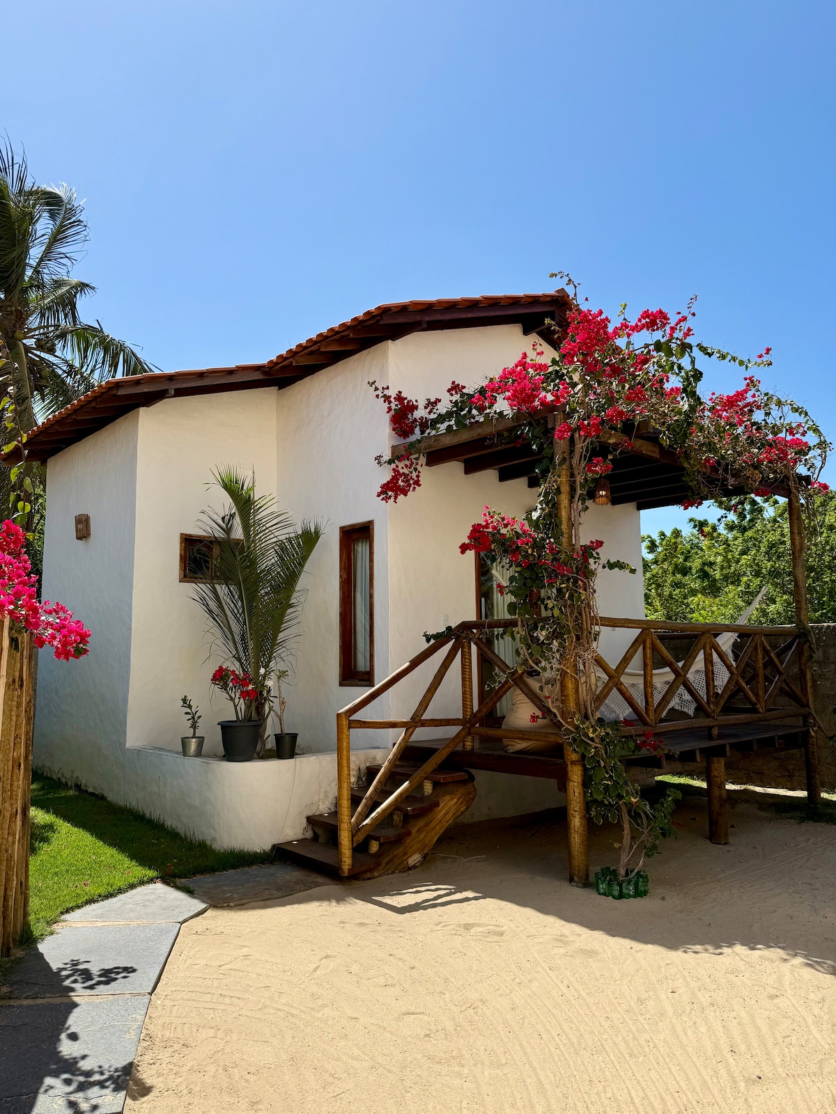 Individuální chalé až pro 4 osoby v Barra Grande – Piauí, nacházíme se na hlavní ulici a za méně než 2 minuty dojdete k moři. Máme kuchyň se základními potřebami a nádobím pro malá jídla. Ložní prádlo a osuška jsou k dispozici Venkovní prostor s útulnou zahradou a červenou čárou na balkoně. Od toho, aby bylo vše pěšky, centrinho je 5 minut. Vedle pracovní restaurace, kde se podává lahodná snídaně a za cenu