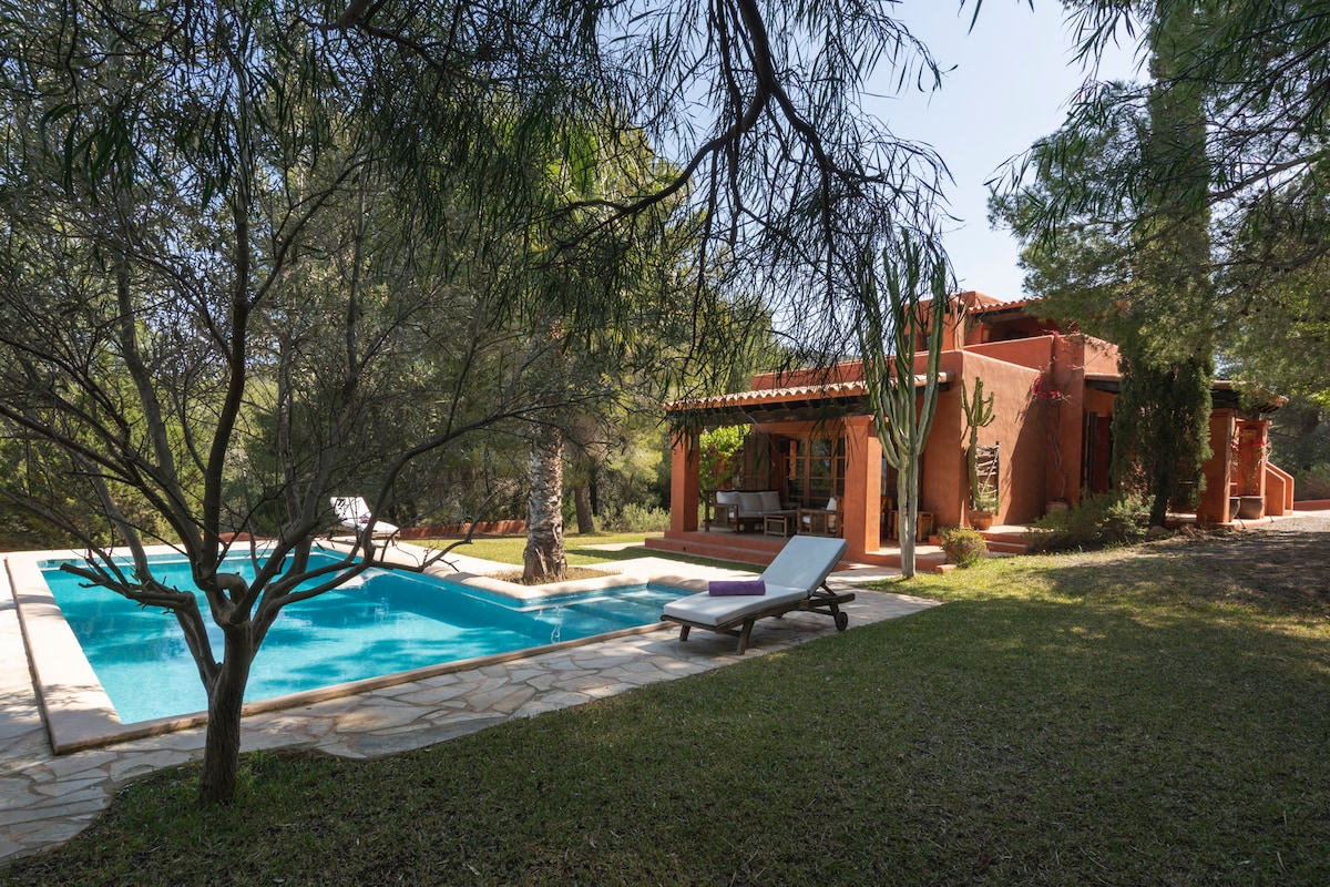Idylická okouzlující vila se skvělým výhledem na moře/západ slunce ze střechy. Bazén (8x5m), gril, 1200 m² zahrada s plotem. 3 ložnice (1 se samostatným vchodem)/2 koupelny. Krásná lokalita: Plně soukromá, ale ne vzdálená: 5 minut autem/taxi (nebo pěšky) do nádherných pláží, útesů, vynikajících restaurací, supermarketů a rušného přístavního města s vodními skútry, plachtěním, tancem, .... Pokud se vydáte na sever, ocitnete se v blízkosti divoké přírody na západní straně Ibizy, a pokud se vydáte na jih, ocitnete se v blízkosti Sunset Strip a večírků. Přijeď a ubytuj se na pravé Ibize!