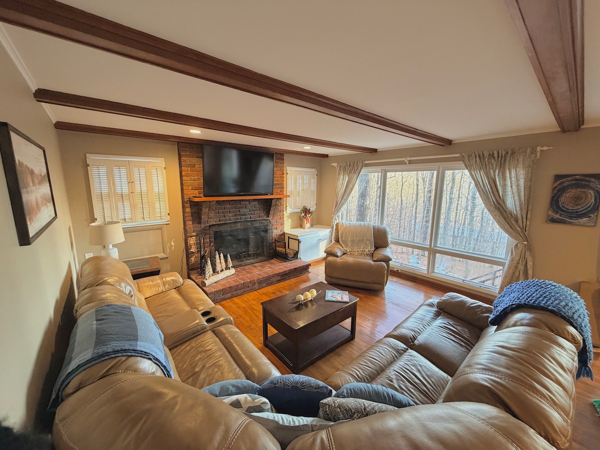 Relax with the whole family at this peaceful nature escape. Nestled within rolling hills and woods, our tranquil home offers a private retreat. Designed for those seeking a true digital detox, you can wake up to morning birdsong and enjoy your coffee in the sunroom or on the back porch while watching deer graze among the towering oaks. Whether you’re seeking a quiet getaway or a family looking to reconnect with nature, this is your perfect sanctuary. There is a one time $20 pet fee PER per