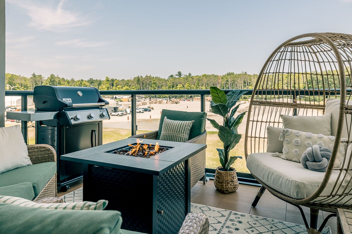 Escape to the Beach at Friday Harbour Resort in our newest addition to our Spa Getaway Group of professionally designed suites that will take you to a luxury destination close to home! This stunning Miami Boho Beach Hotel type vibe suite is very spacious and boasts 3 fire elements (indoor & Out) and your own private in-suite Sauna! With 2 beds and 2 baths there is plenty of space for a couples, friends or family stay! Make memories that last a lifetime in our most unique experience suites!