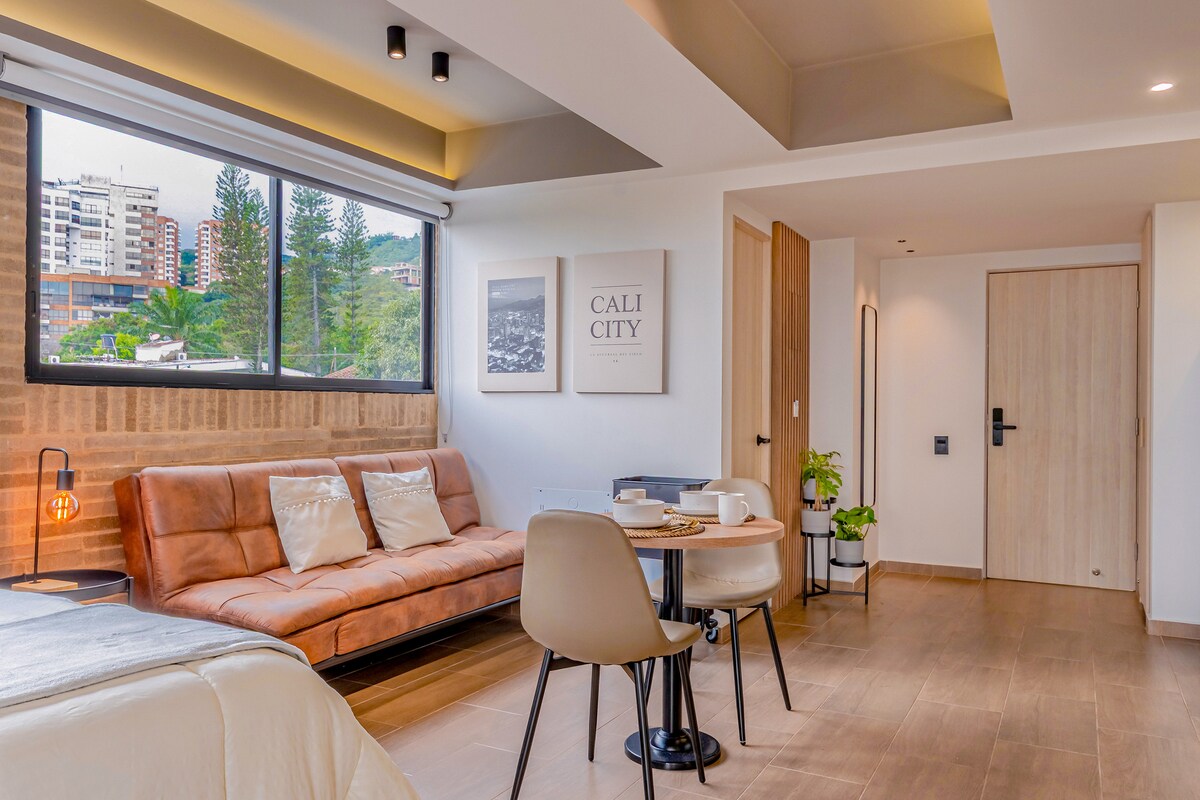 Užij si toto studio navržené tak, aby ti poskytlo pohodlí, relaxaci a hluboký odpočinek, zatímco budeš přemýšlet nad dechberoucím výhledem na Cali. Strategic location less than 10 min by car to: Clinica Imbanaco, Pascual Guerrero Stadium, Tequendama/medical area and sports area.